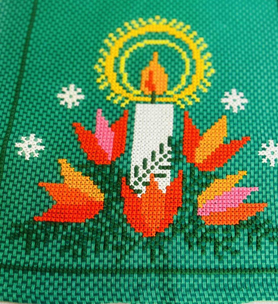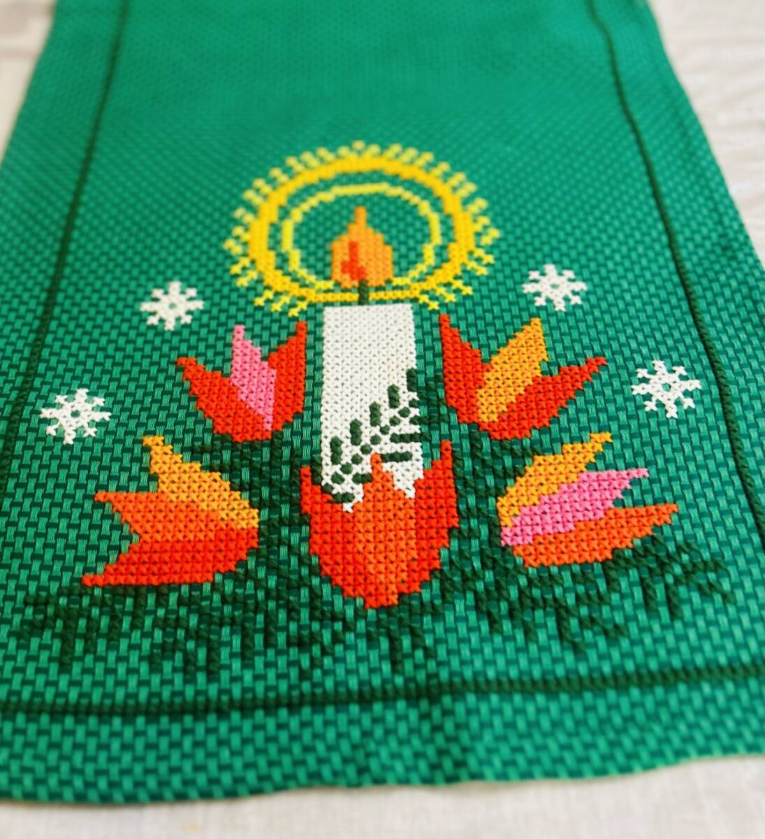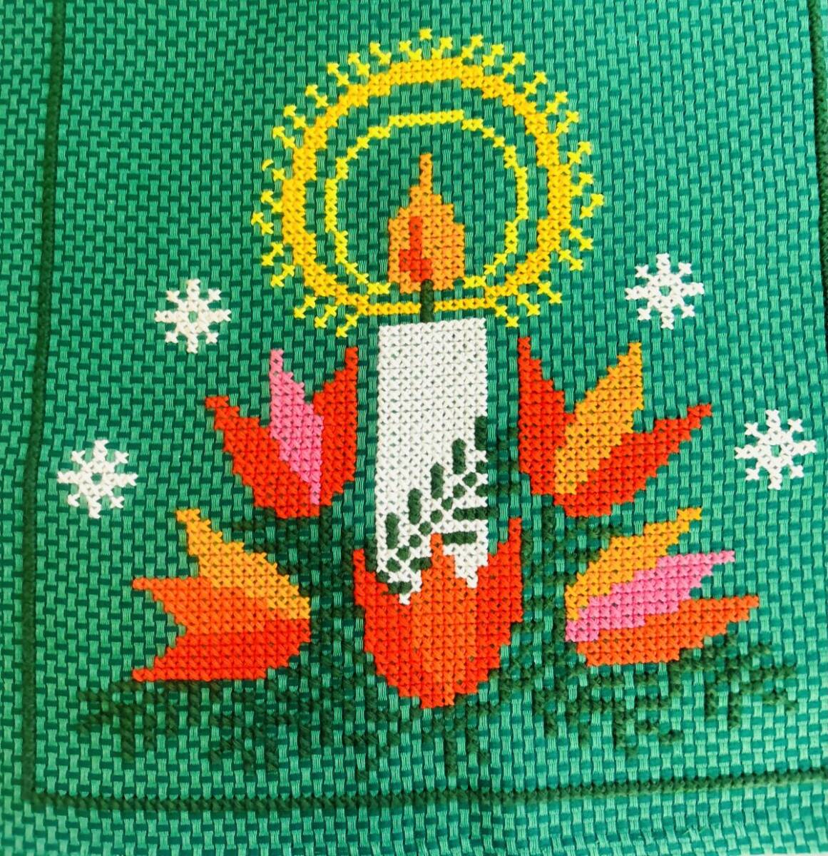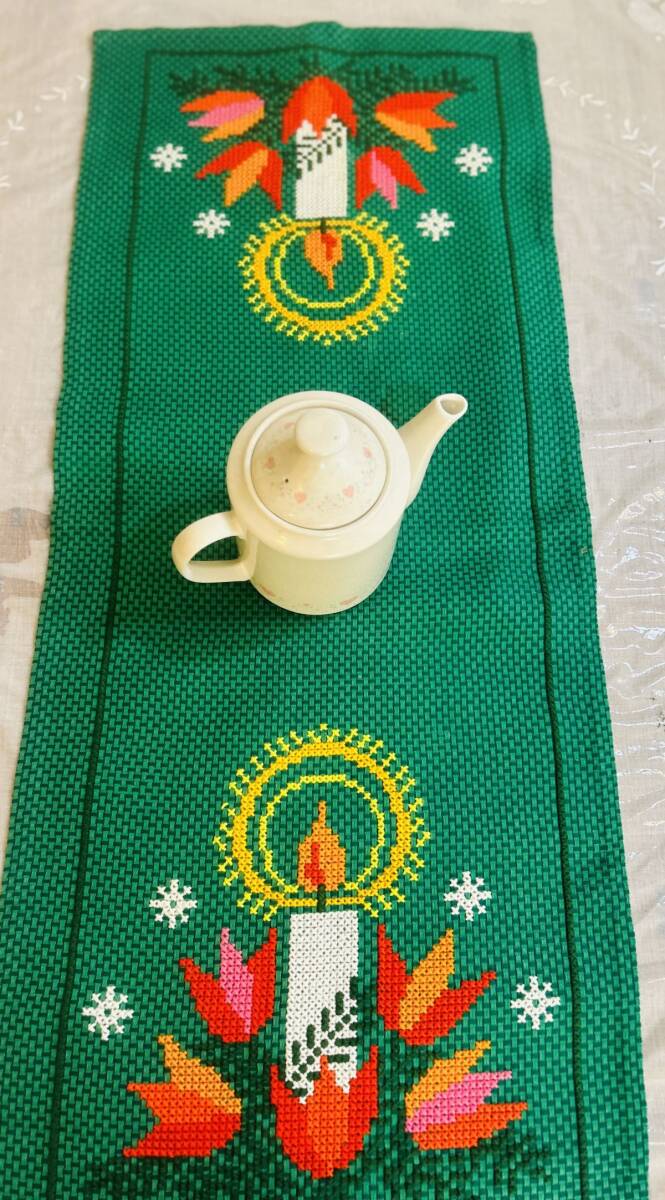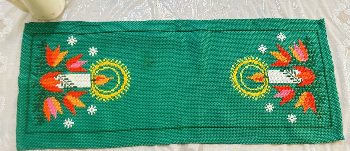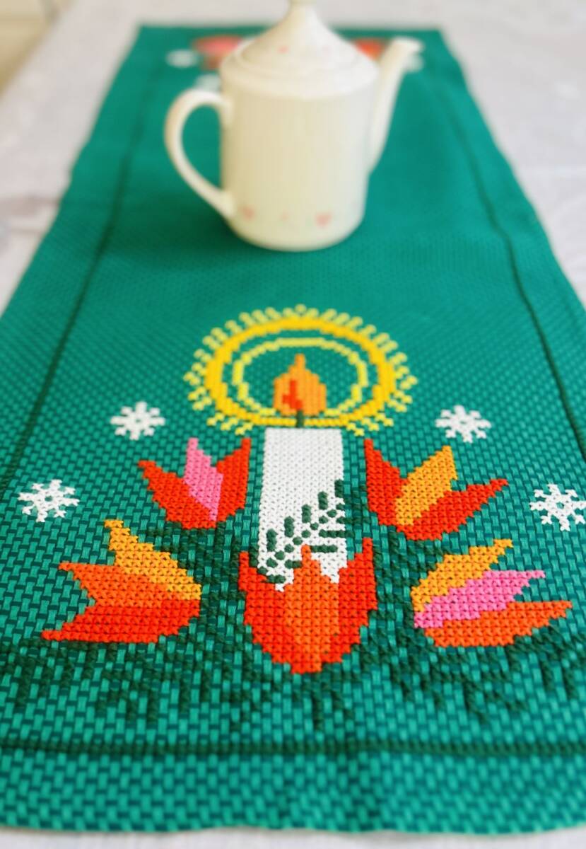 北欧クリスマス☆コットン グリーン地キャンドルとチューリップ ランナー*訳あり |