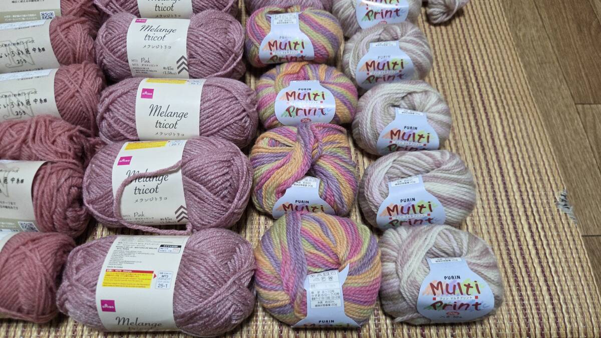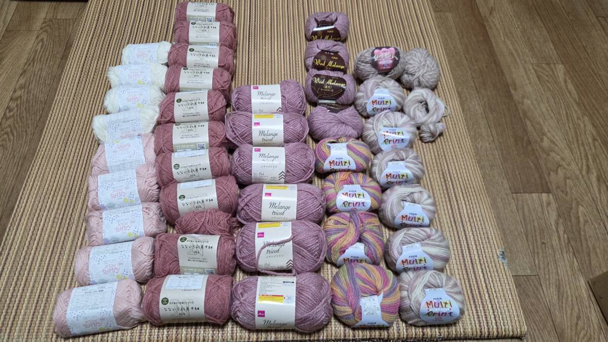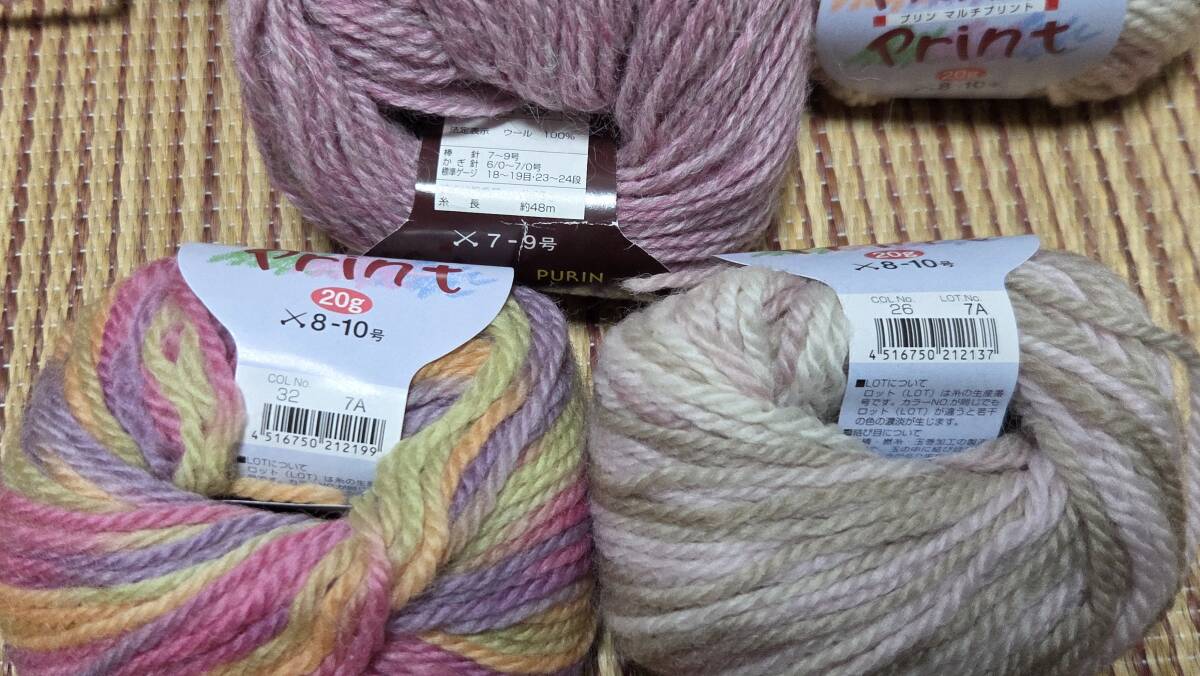 未使用 まとめて40玉+使いかけ プリンマルチプリント 26番 32番 他 並太 中細 白 ピンク 紫 手芸材料 ワッツ セリア ダイソー 毛糸 大量