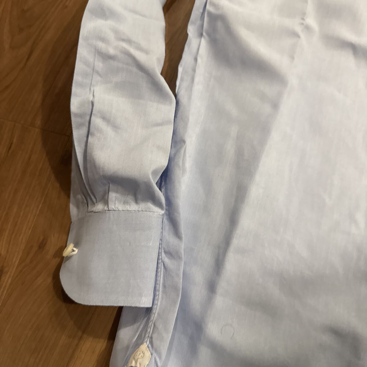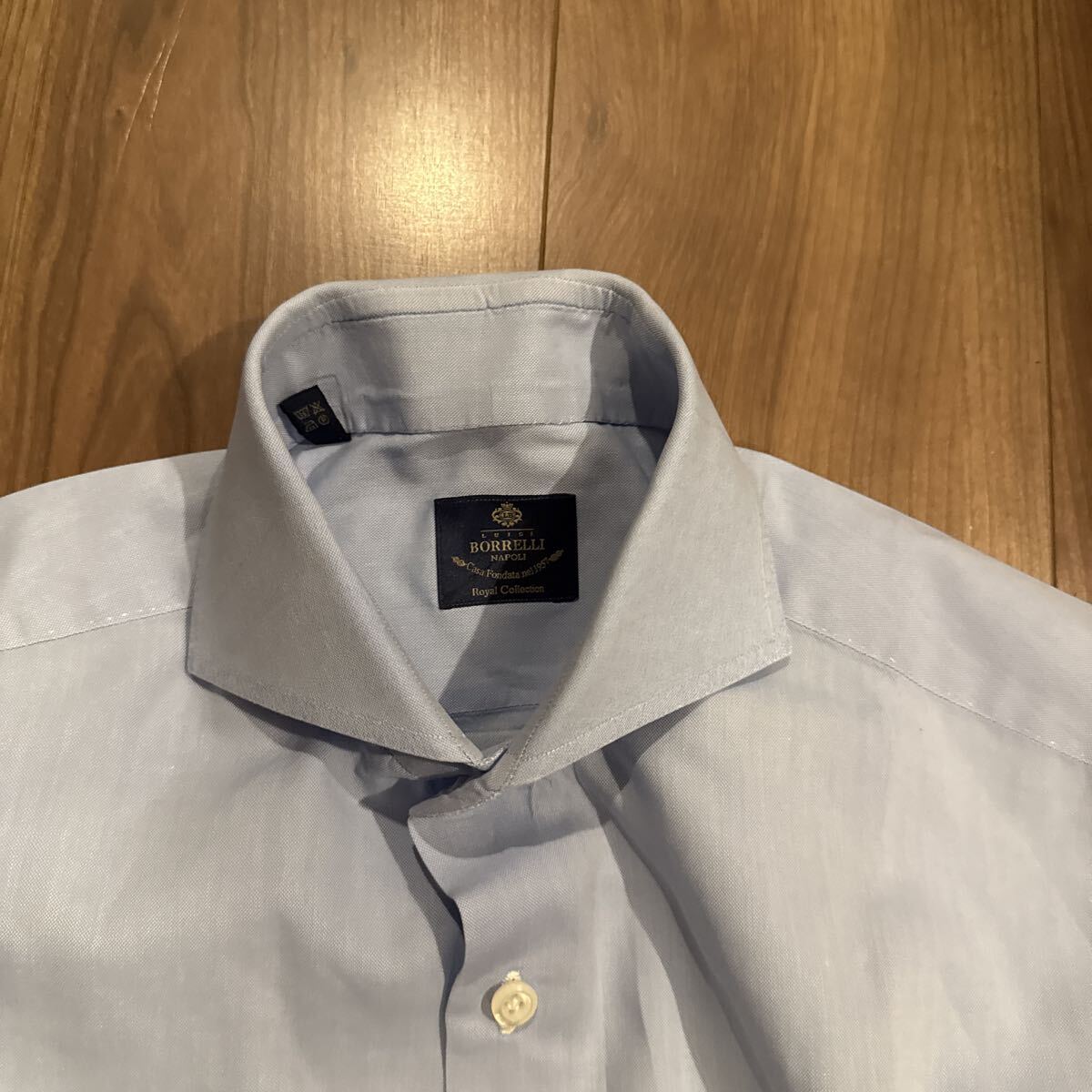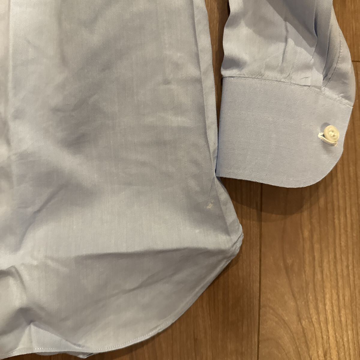 中古 傷あり LUIGI BORRELLI<ルイジ ボレッリ> ドレスシャツ ロイヤルコレクション ブルー サイズ 38/15 左下に白く傷みたいのがあります。 写真ご確認ください。 100円出品のためノークレームノーリターンになります。 素材 cotton サイズ M 肩幅42cm 身幅51cm 着丈71cm 袖丈 57cm 素人採寸のため誤差はご了承ください。 非常にかっこよいためこの機会に是非。