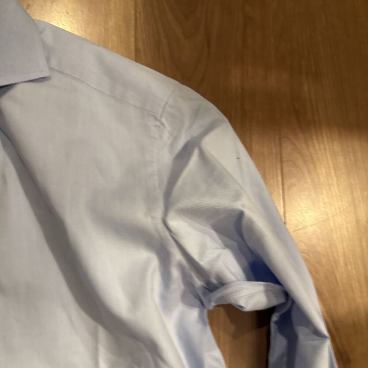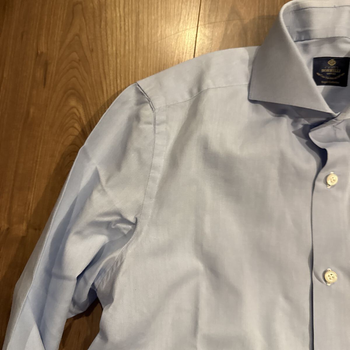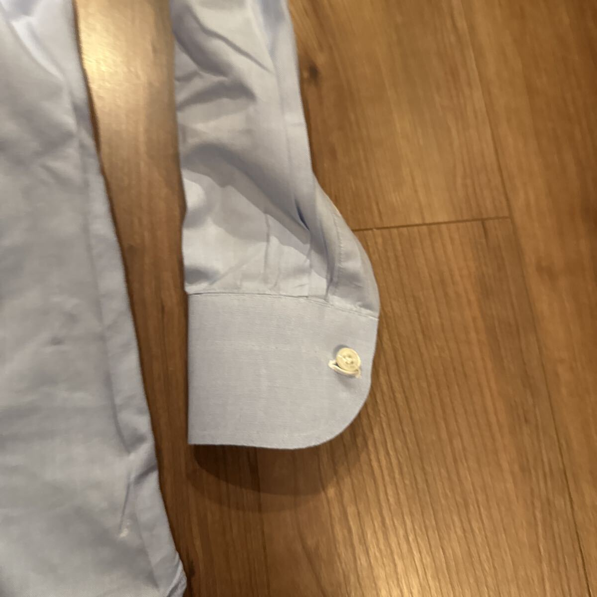 中古 傷あり LUIGI BORRELLI<ルイジ ボレッリ> ドレスシャツ ロイヤルコレクション ブルー サイズ 38/15 左下に白く傷みたいのがあります。 写真ご確認ください。 100円出品のためノークレームノーリターンになります。 素材 cotton サイズ M 肩幅42cm 身幅51cm 着丈71cm 袖丈 57cm 素人採寸のため誤差はご了承ください。 非常にかっこよいためこの機会に是非。