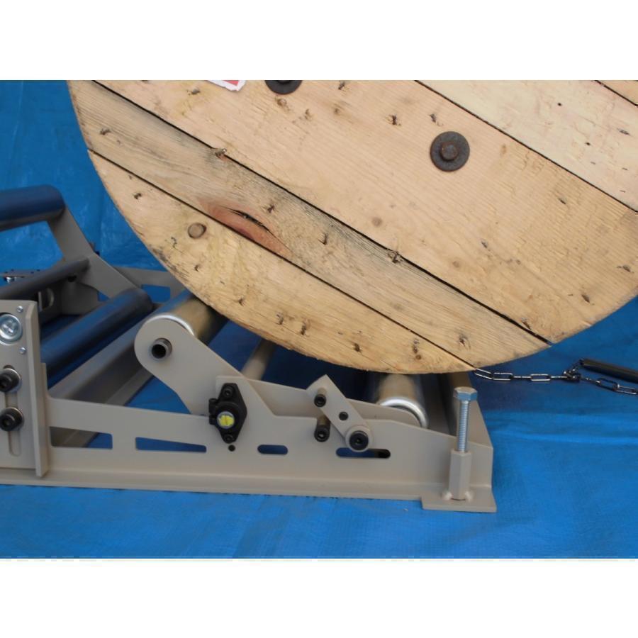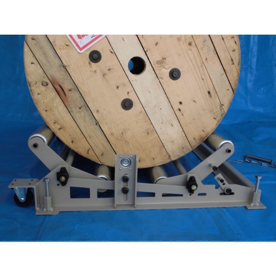 ローラー台座とは、重量物のケーブルドラムを4本のローラーで受けとめ重量を分散し回転負荷を減少させます。