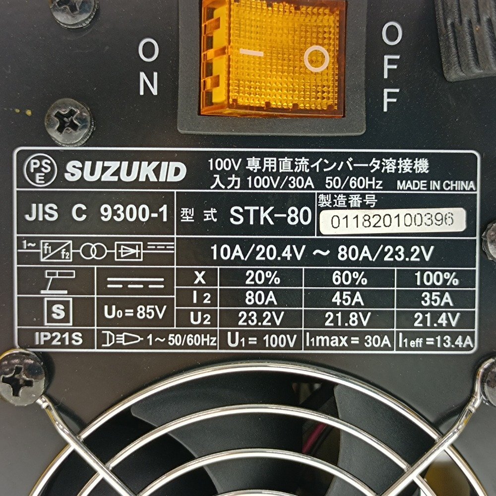 | SUZUKID スズキッド アーク溶接機 スティッキー80 STK-80 100V専用 直流インバーター ステンレス 鋳物 コンパクト 電動工具 中古 |
