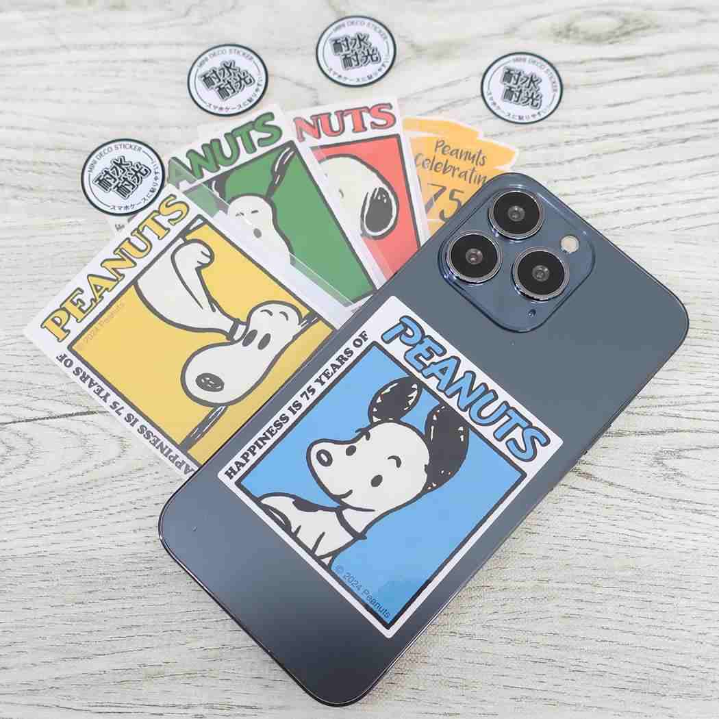 PEANUTS誕生75周年記念したアートを使用したシリーズ 大人気PEANUTS/SNOOPYグッズにまたまた可愛いnewアイテム登場こちらはかわいい[ミニデコステッカー]スマホケースやPC、スーツケース、自転車などなどいろんなものをデコレーション 耐水耐光仕様で屋外使用も出来ますかわいいステッカーいろいろあるのでお気に入りを揃えてくださいサイズ:約65x73mm以内ダイカット素材:PP