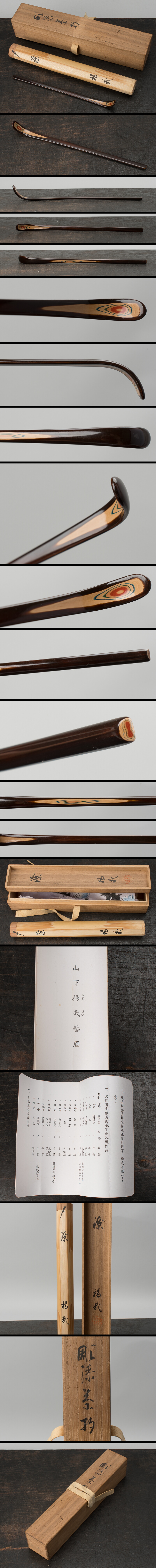 | 山下楊哉の彫漆茶杓。共箱有。真作保証。 もちろん、本木地・本漆塗です。 サイズは、長さ約18cm。 傷・直し・ヤケ・歪み等ありません。 状態、詳細は画像でご確認ください。 |