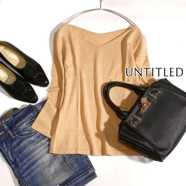 美品 UNTITLED アンタイトル ウール100% シンプル薄手 ニット セーター 2号 M 秋 冬 25D10