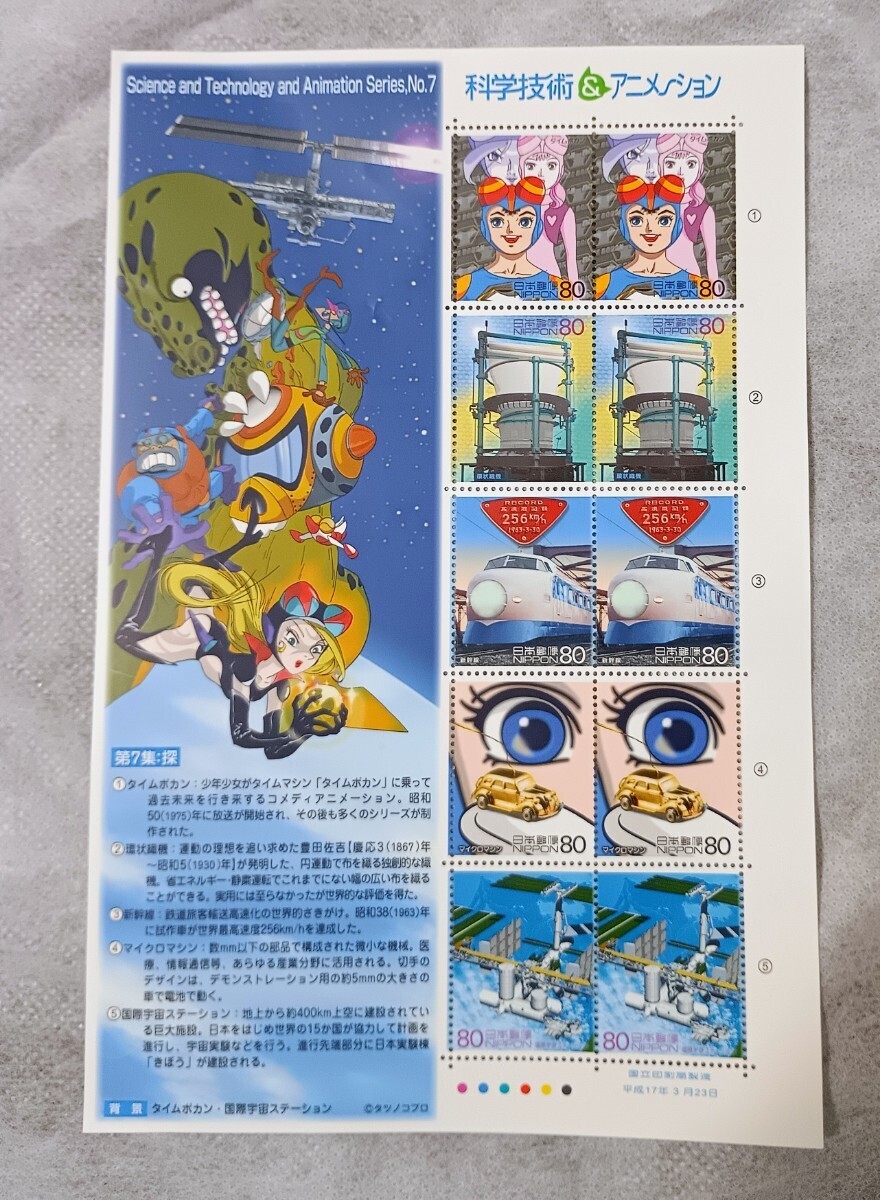 未使用80円切手シート◆科学技術&アニメーション/タイムボカン/新幹線/マイクロマシン等
