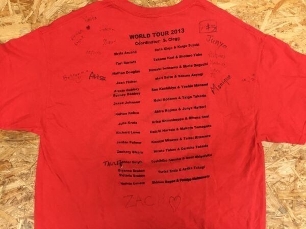 STURGEON COMPOSITE HIGH SCHOOL CANADA 交換留学 WORLD TOUR 2013 半袖Tシャツ メンズ バックプリント有 L 赤 サイン入り です。