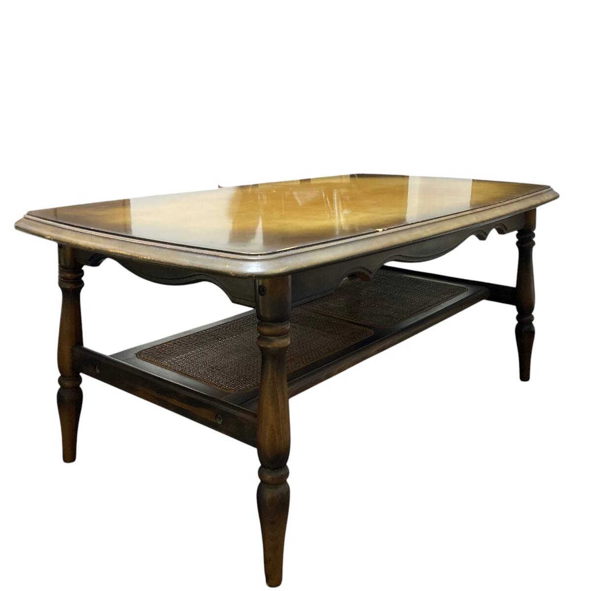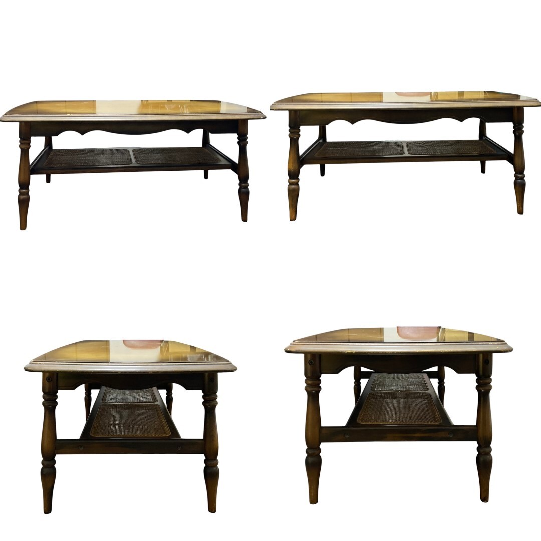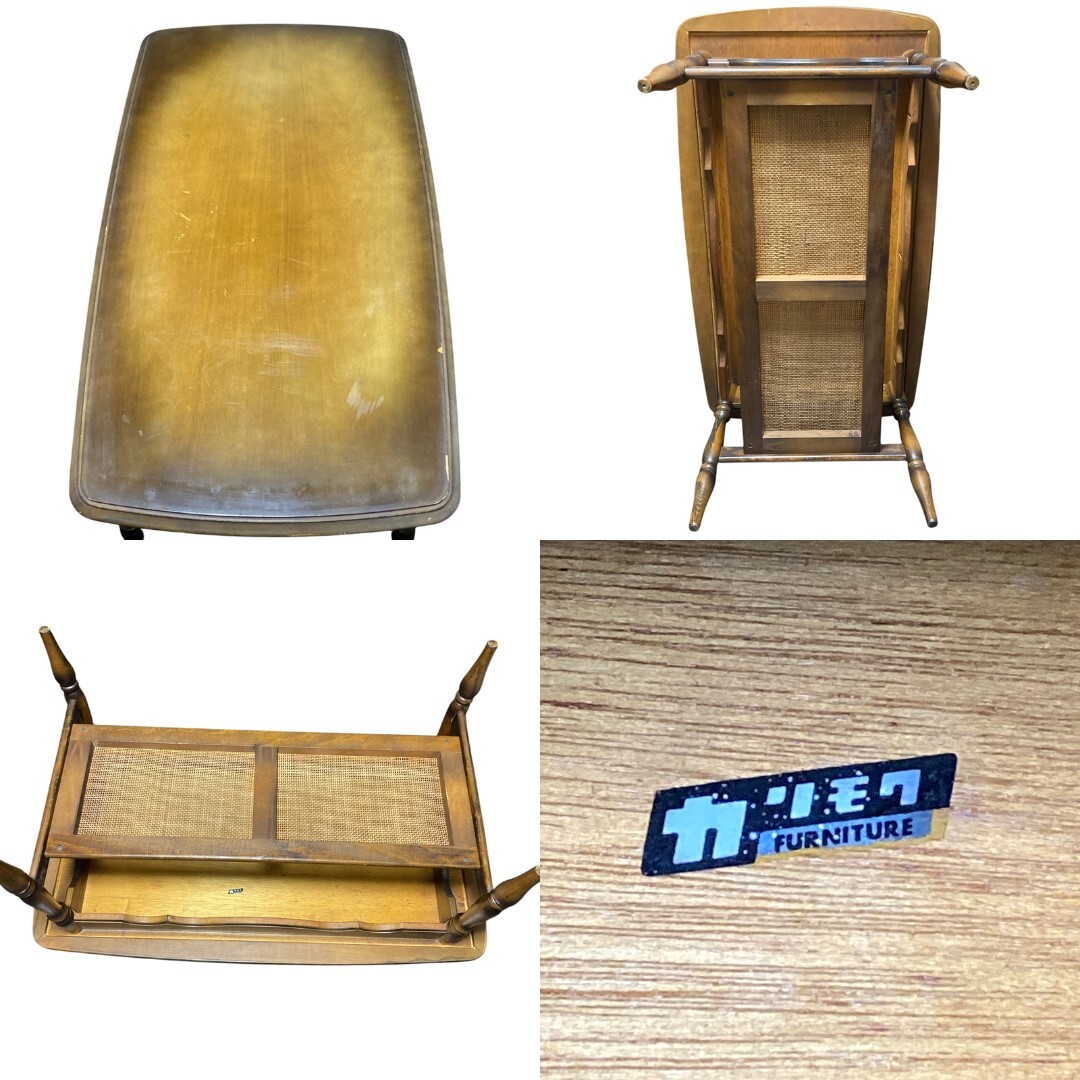◆商品詳細 ・中古品 ・ラタン(籐)素材の 棚が付いたデザイン ・雑誌やリモコン、 小物などをすっきり収納 ・木の質感とヴィンテージ感が魅力 ・古家具として 味わいのある状態です ◆サイズ ・幅 :103cm ・高さ :45cm ・奥行き :58cm ・重さ :13kg ※誤差はご了承ください ◆状態 ・天板に変色、キズなどあり ・ラタン棚は破れありません ・全体的に使用感があります ・現状販売となります ・除菌シートにて簡易清掃済み |