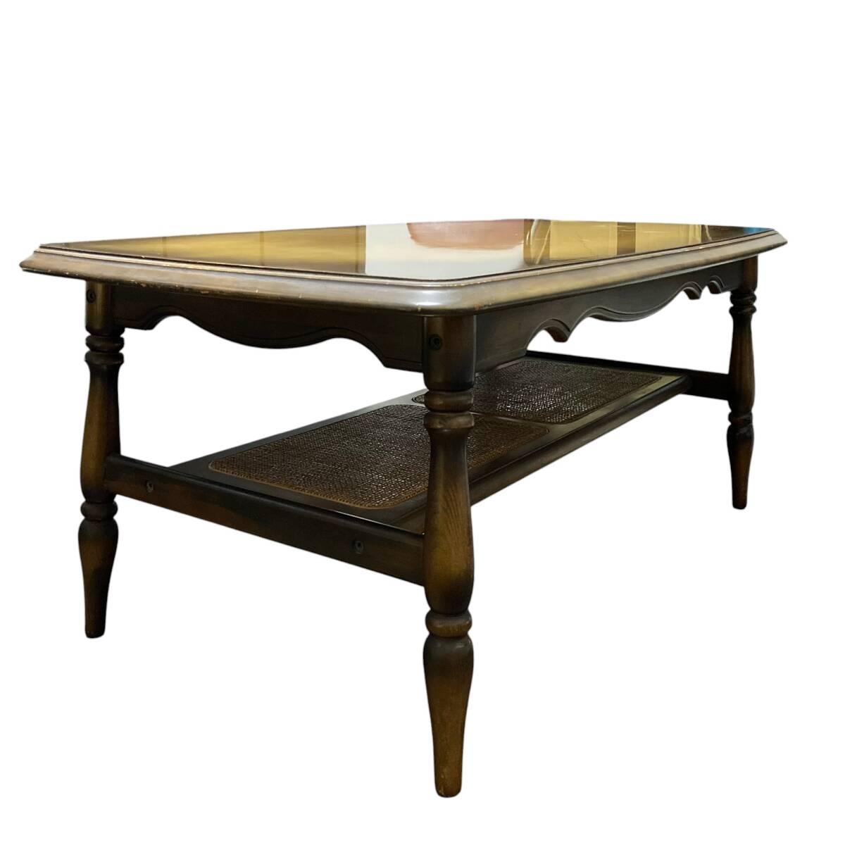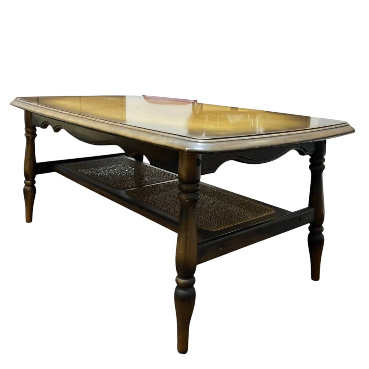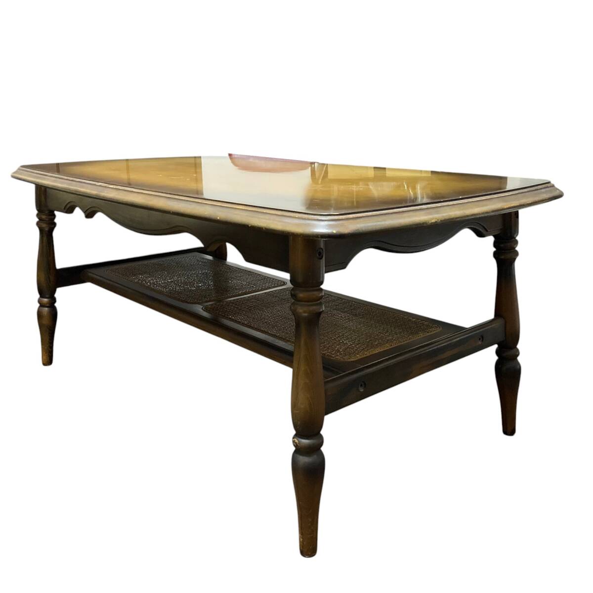 ◆商品詳細 ・中古品 ・ラタン(籐)素材の 棚が付いたデザイン ・雑誌やリモコン、 小物などをすっきり収納 ・木の質感とヴィンテージ感が魅力 ・古家具として 味わいのある状態です ◆サイズ ・幅 :103cm ・高さ :45cm ・奥行き :58cm ・重さ :13kg ※誤差はご了承ください ◆状態 ・天板に変色、キズなどあり ・ラタン棚は破れありません ・全体的に使用感があります ・現状販売となります ・除菌シートにて簡易清掃済み |
