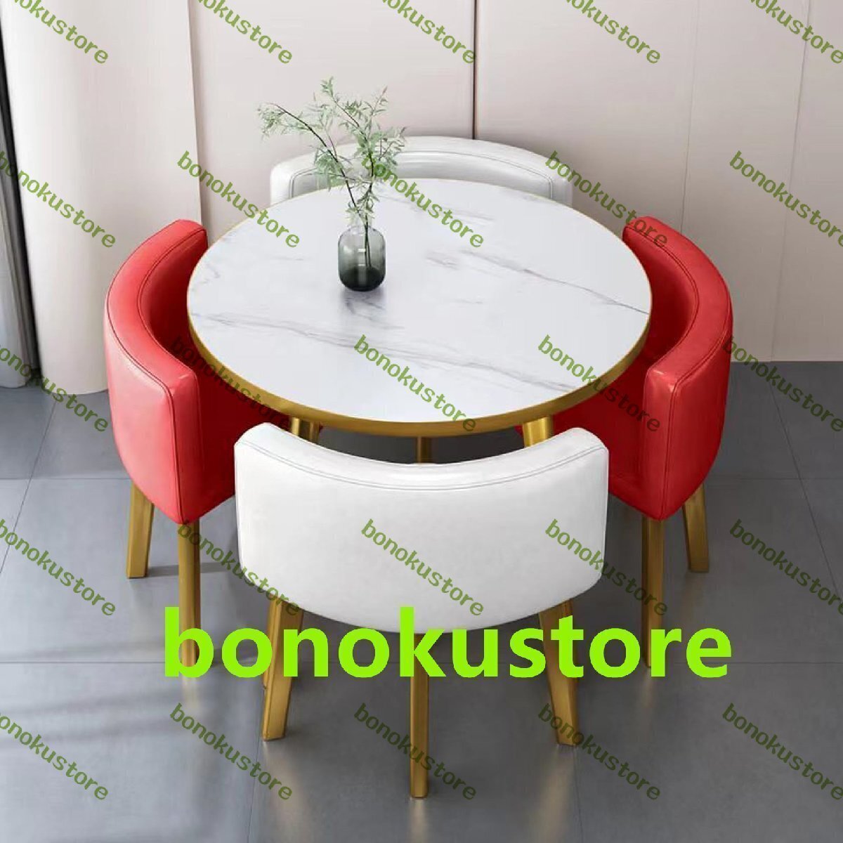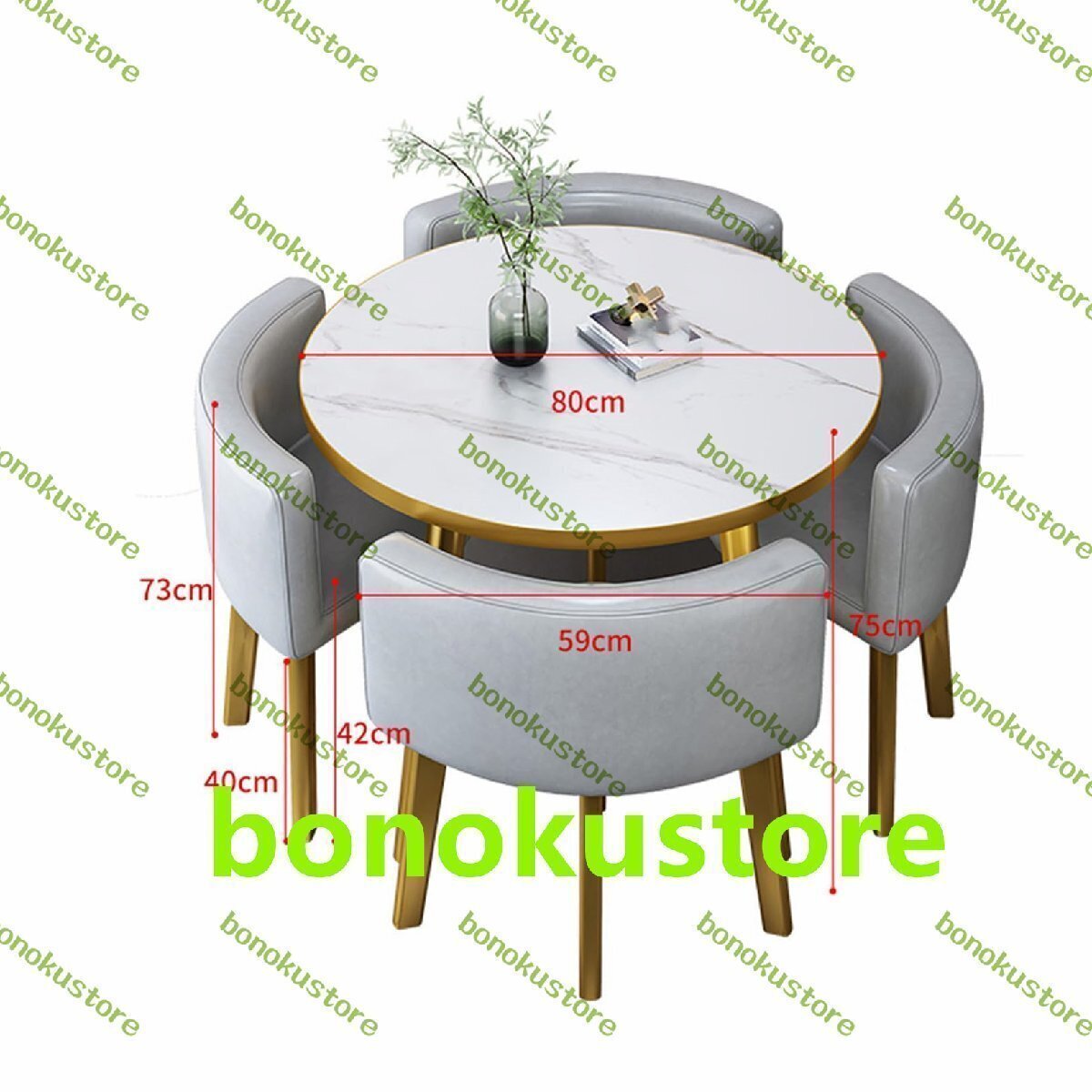 製品仕様: 【材質】レザー、木、金属 【テーブル】直径80×高さ75 【チェア】幅59×高さ73 (座面高42) 【SET】テーブル1台、椅子4脚 デザインには機能性と快適さが融合しています。広々としたテーブルは、仕事の道具やアートのクリエーションに最適なスペースを提供。そして、優雅な椅子は姿勢を支え、長時間の作業も疲れ知らずです。 ご家族でのお食事の時間をより楽しくお過ごしいただけます。 キッチン、ダイニングルーム、レストラン、コーヒーショップ、家庭での使用に適しています。 ご注意: ①製品は完全に手作業で測定されており、1~3 cmの誤差が生じる場合があります。実際に受け取った商品を参照してください。 ②異なるモニタのために写真と実際の製品は、特定のエラーを持っているでしょう、製品は写真の装飾が含まれていない、それらに精通しているしてください。 ③家具は環境に優しい素材で作られています。 家具は工場で完成後すぐに梱包されます。 密閉された環境では、家具に臭いがつくことがあります。しばらく換気をすれば、新しい家具の臭いは自然に消えます。 ④テーブルと椅子のセットは別々の小包になる場合があり、同時に受け取ることはできませんのでご注意ください。 ⑤大型商品のため、品質以外の問題による返金や交換はできません ⑥製造および素材の性質上、製品には使用に差し支えない程度の小さな傷や欠陥がある場合があります。 気になる方はご注文をお控えください。