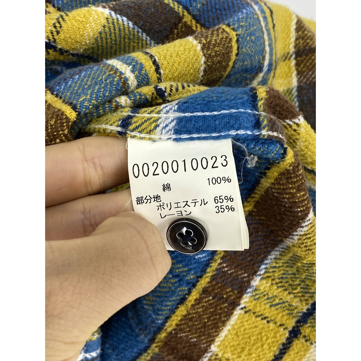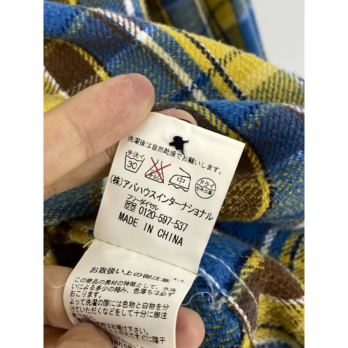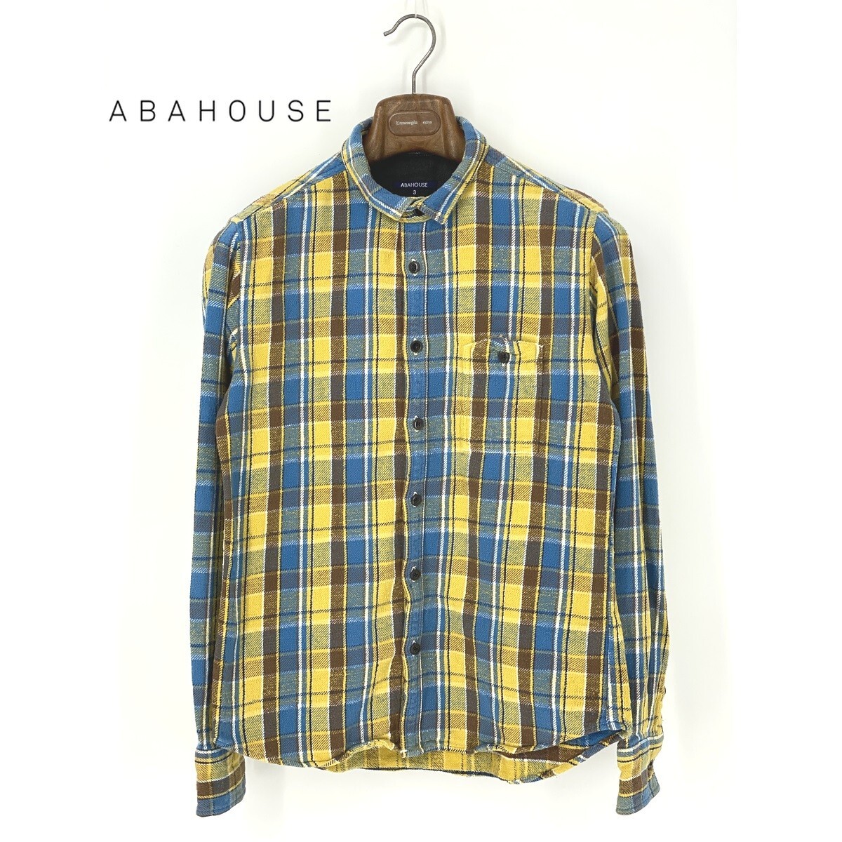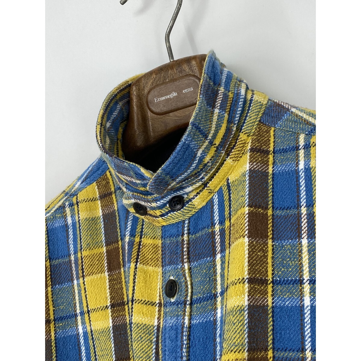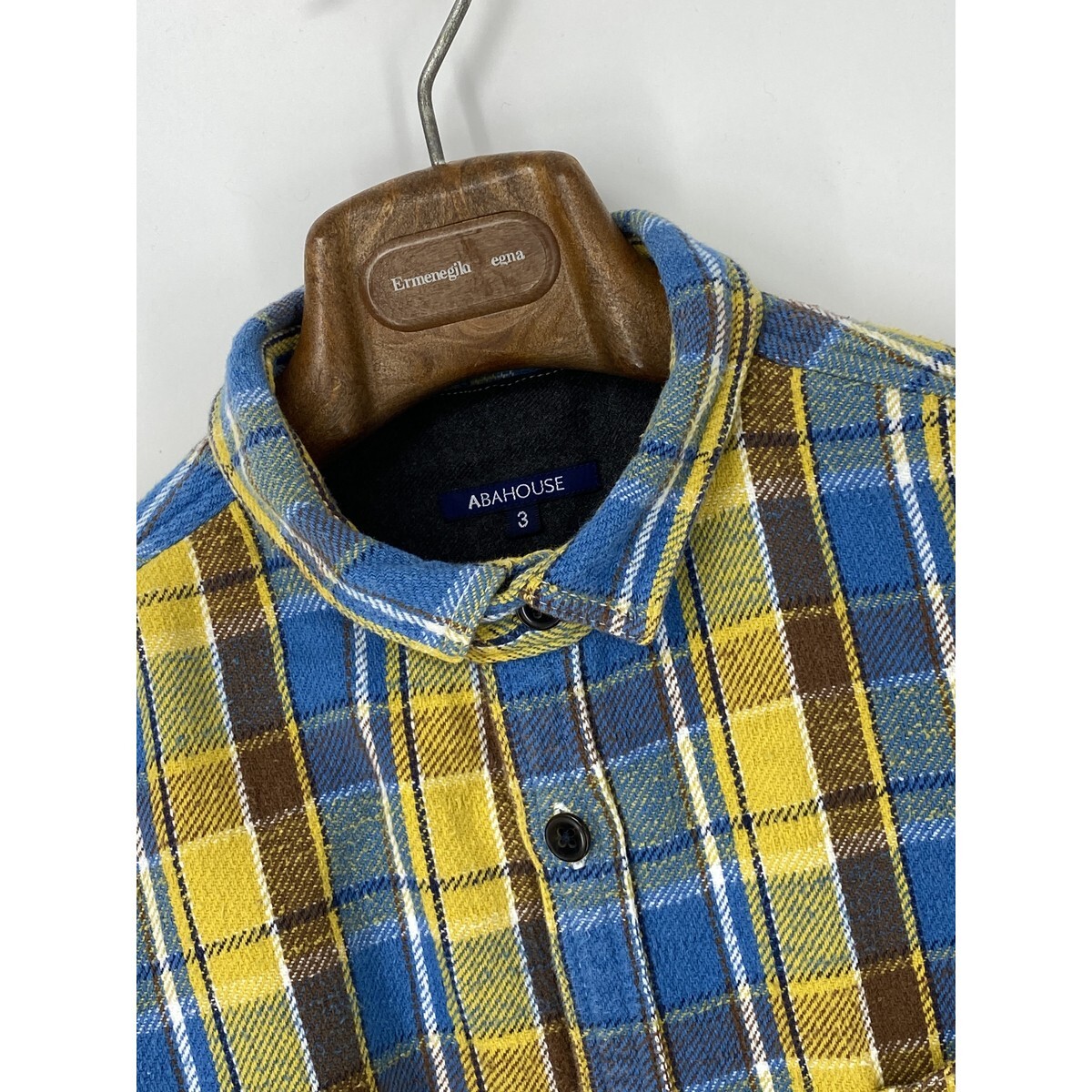 A8861/極美品 春夏 ABAHOUSE アバハウス コットン 長袖 ハイネック マオカラー チェック ワーク ネルシャツ 3 L程 黄色 水色 メンズ