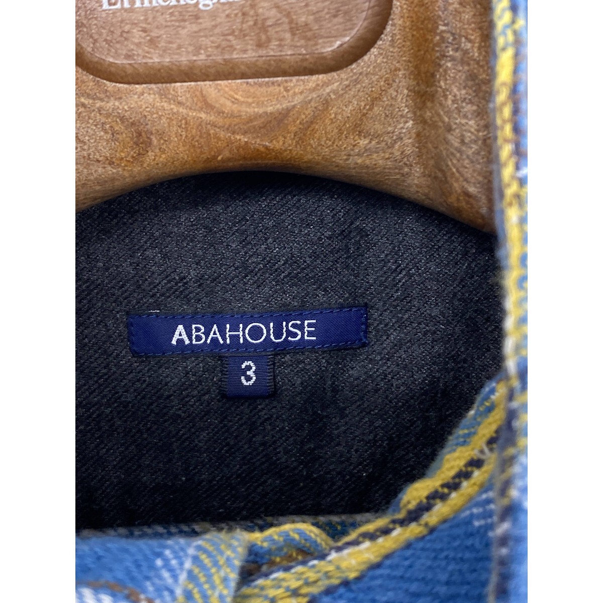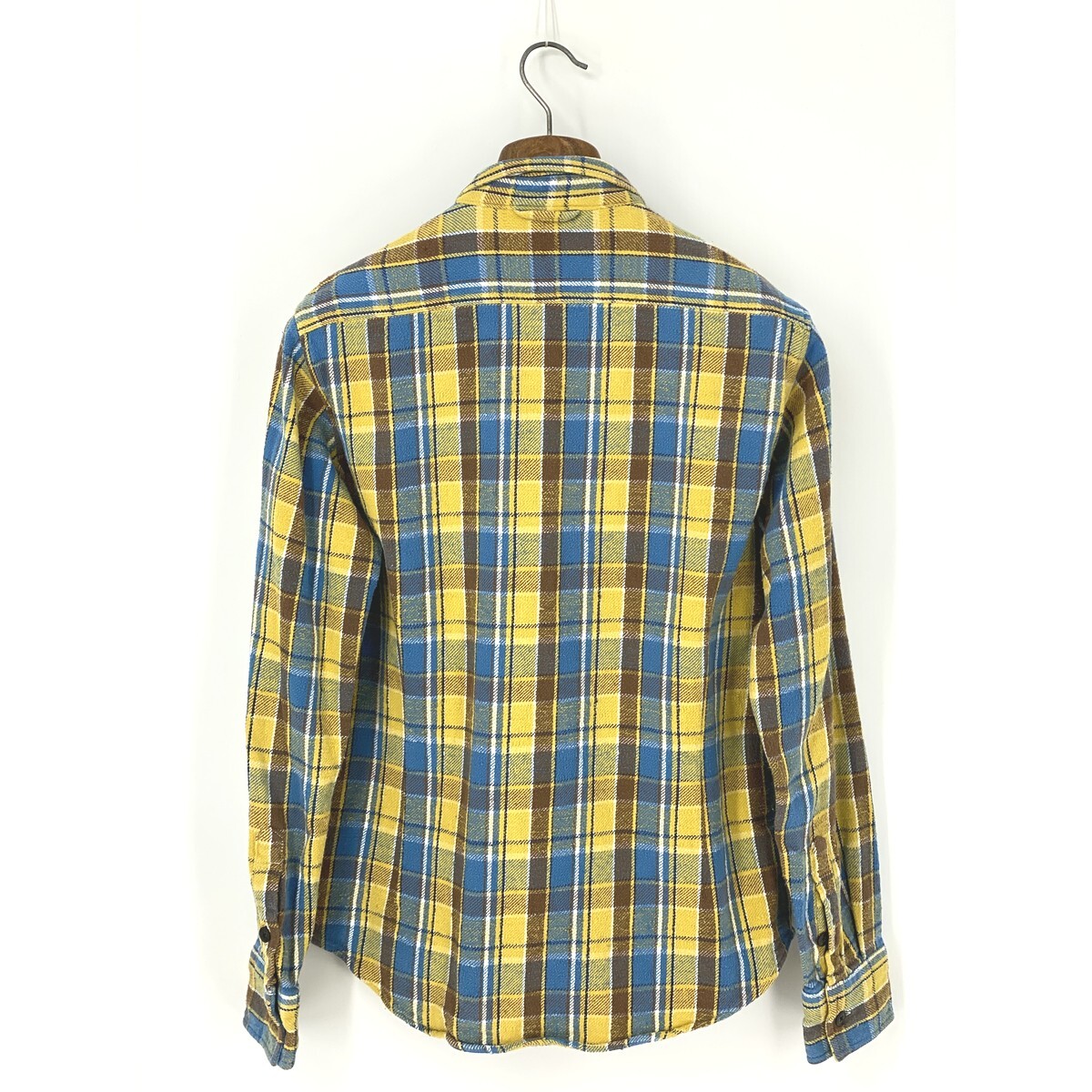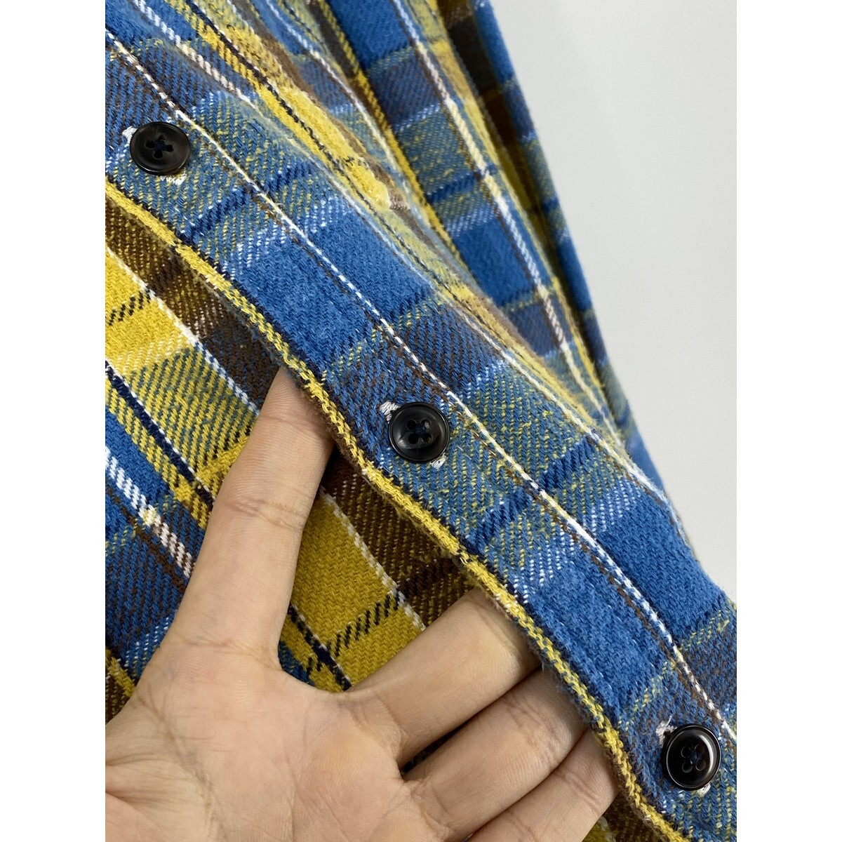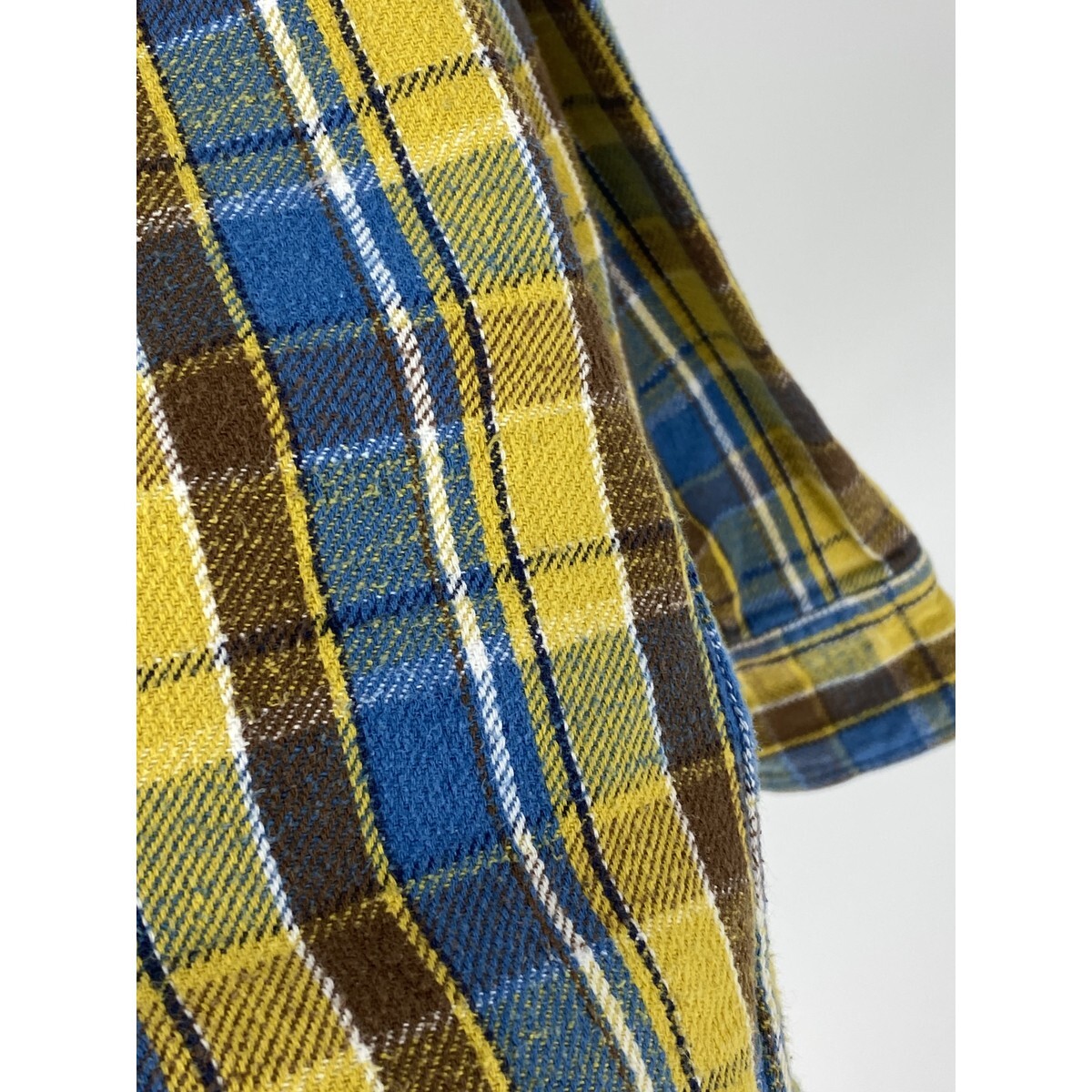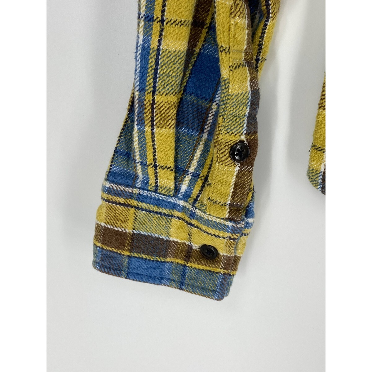 A8861/極美品 春夏 ABAHOUSE アバハウス コットン 長袖 ハイネック マオカラー チェック ワーク ネルシャツ 3 L程 黄色 水色 メンズ