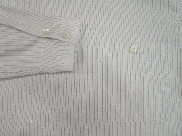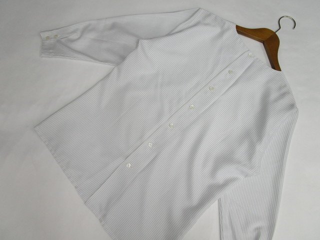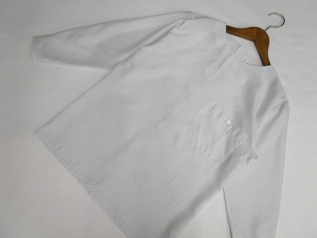 長袖 ラウンドネック プルオーバーブラウス 5 ホワイト地 ブルー ストライプ柄 【メール便可】