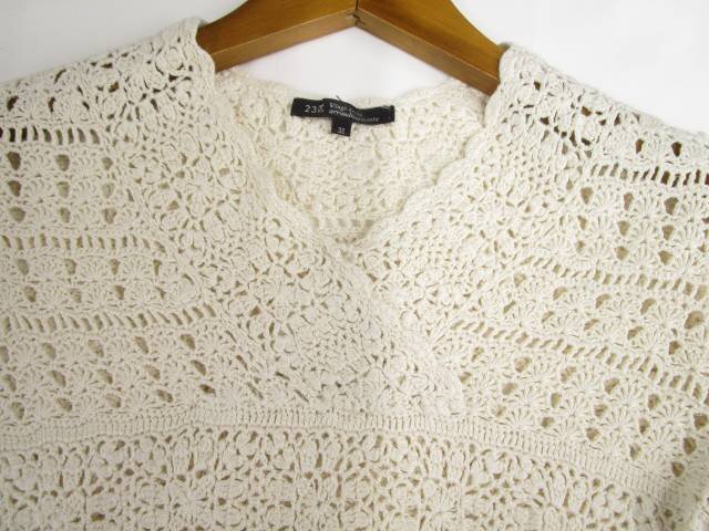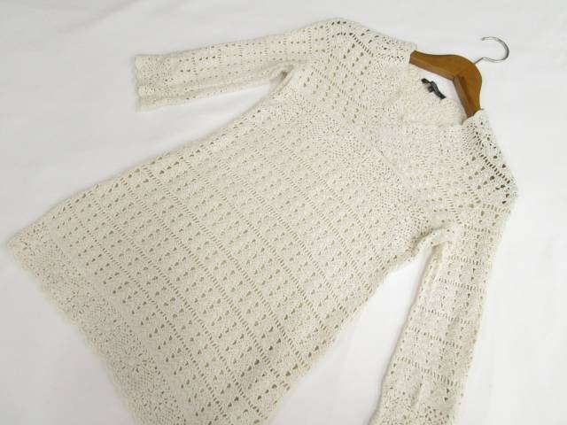 九分袖 カシュクールネック 洗えるニットチュニック 32 アイボリー