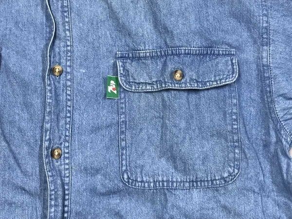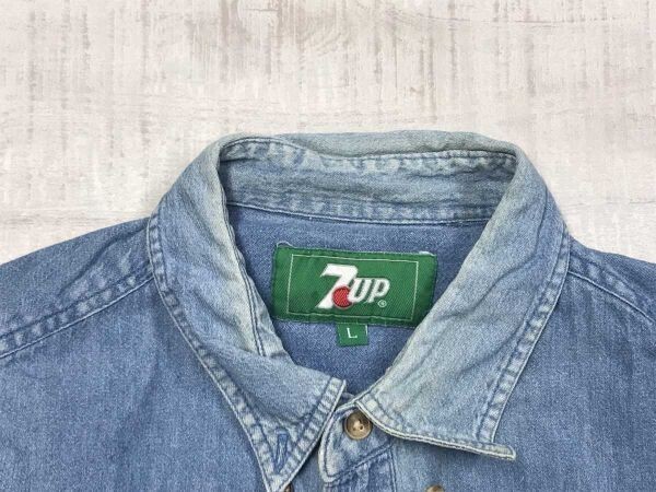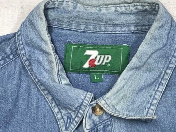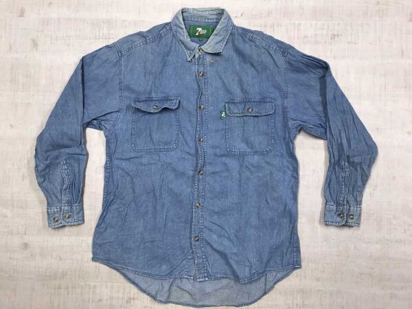 7UP セブンアップ オールド レトロ アメカジ 企業物 古着 両胸ポケット 長袖 デニム シャツ メンズ 古着 コットン100% L 青 です。
