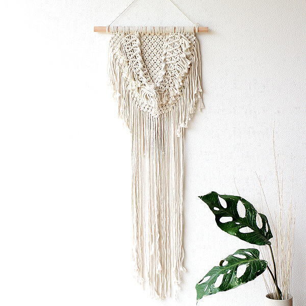 | コットンロープをマクラメ編みで編み上げた 素朴で優しい印象のタペストリー 職人さんが 時間をかけて作り上げたアイテムは 工業製品にない味わいと 温もりに溢れています 長さのあるタペストりーは 小さなフリンジをいくつもまとい 存在感のある絵画のように飾れそうです 商品名 : マクラメタペストリー ドレスロング 商品番号 : mty6997 全体サイズ(cm) : 幅50×奥行2.5×高さ140 ※吊り紐を含む タペストリーサイズ : 幅37×長さ123 材質 : コットンロープ 木 他 重量 : 約1kg ※取り付け用ネジは付属していません ※壁等にお取り付けの際は強度を十分にお確かめの上、しっかりとお取り付け下さい ※生地の性質上、織キズやネップ(繊維の筋・かたまりが生地表面にでたもの)などはご容赦ください |