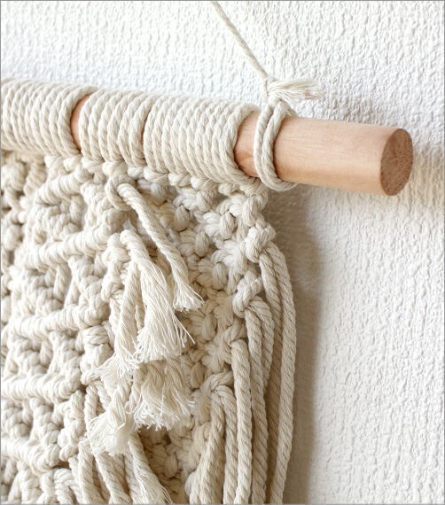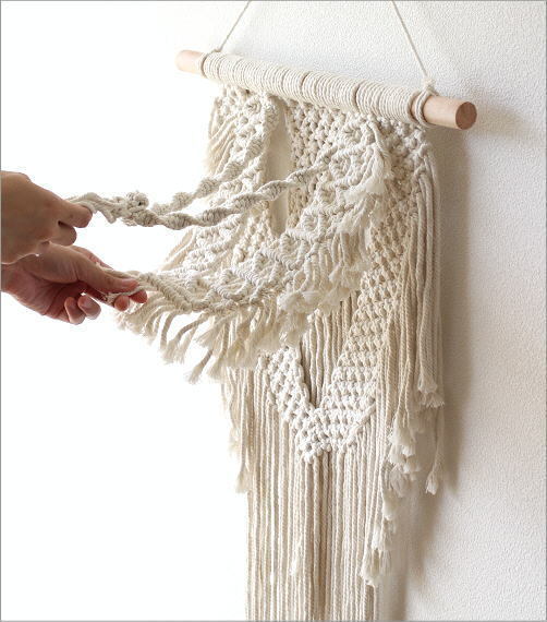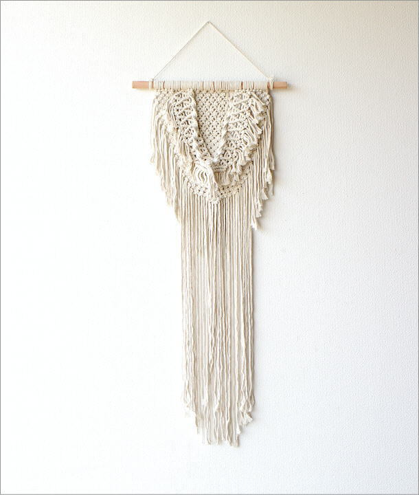 | コットンロープをマクラメ編みで編み上げた 素朴で優しい印象のタペストリー 職人さんが 時間をかけて作り上げたアイテムは 工業製品にない味わいと 温もりに溢れています 長さのあるタペストりーは 小さなフリンジをいくつもまとい 存在感のある絵画のように飾れそうです 商品名 : マクラメタペストリー ドレスロング 商品番号 : mty6997 全体サイズ(cm) : 幅50×奥行2.5×高さ140 ※吊り紐を含む タペストリーサイズ : 幅37×長さ123 材質 : コットンロープ 木 他 重量 : 約1kg ※取り付け用ネジは付属していません ※壁等にお取り付けの際は強度を十分にお確かめの上、しっかりとお取り付け下さい ※生地の性質上、織キズやネップ(繊維の筋・かたまりが生地表面にでたもの)などはご容赦ください |