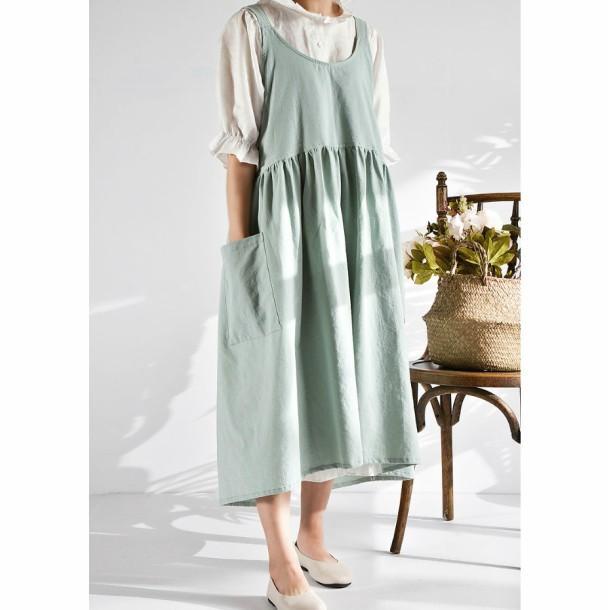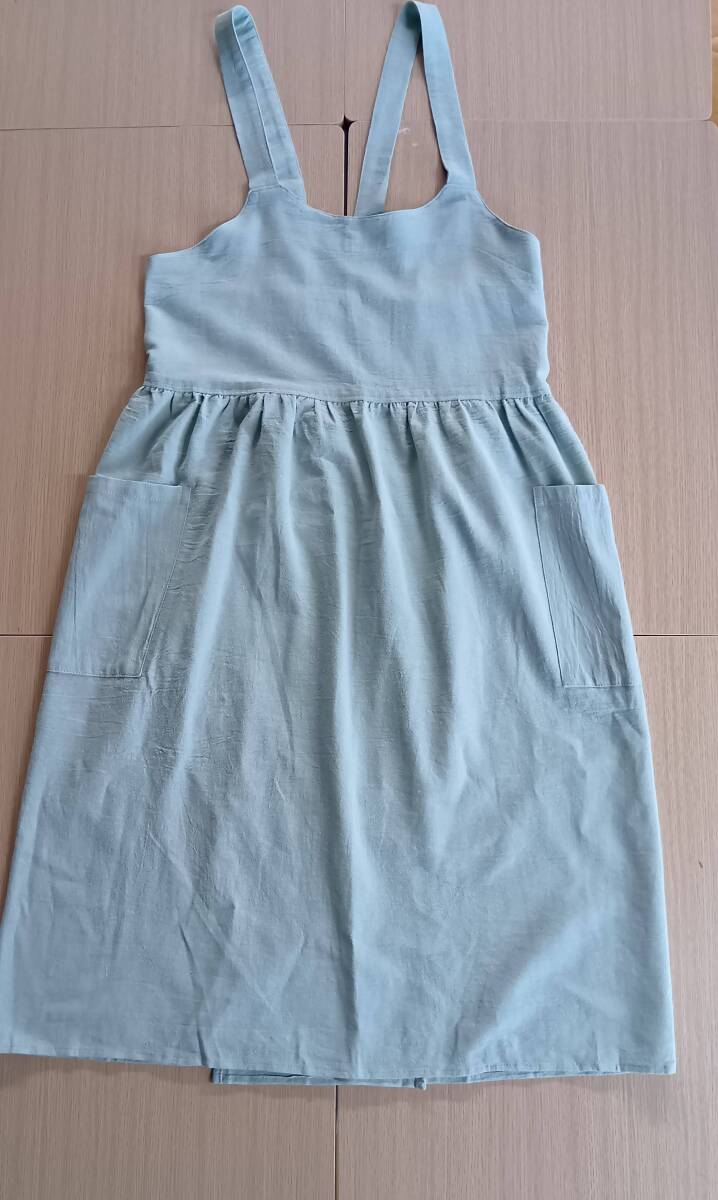 かぶるだけ コットンリネン エプロン おしりが隠れる 可愛いエプロン 保育士 リネン ミント