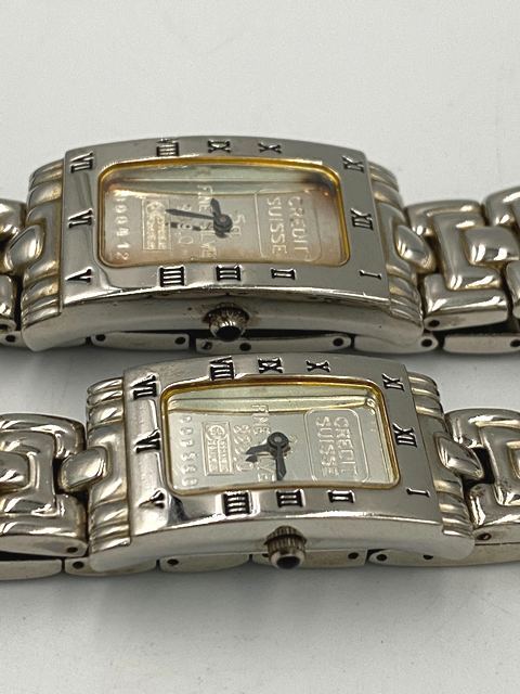 &K104175: クレジットスイス CREDIT SUISSE 腕時計 ペア シルバーインゴット 不動 ジャンク