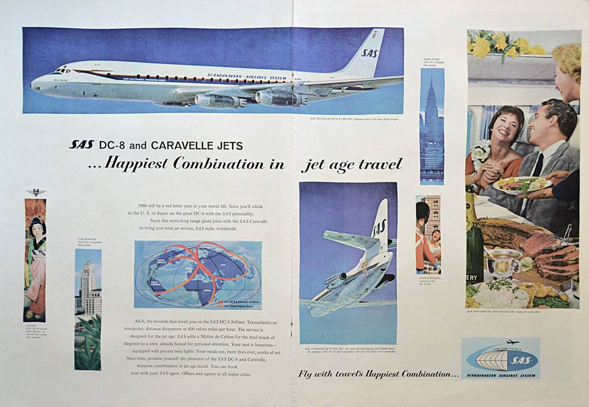 稀少!1960年スカンジナビア 航空広告/SAS DC-8 & Caravelle Jets/エアライン/北欧/46