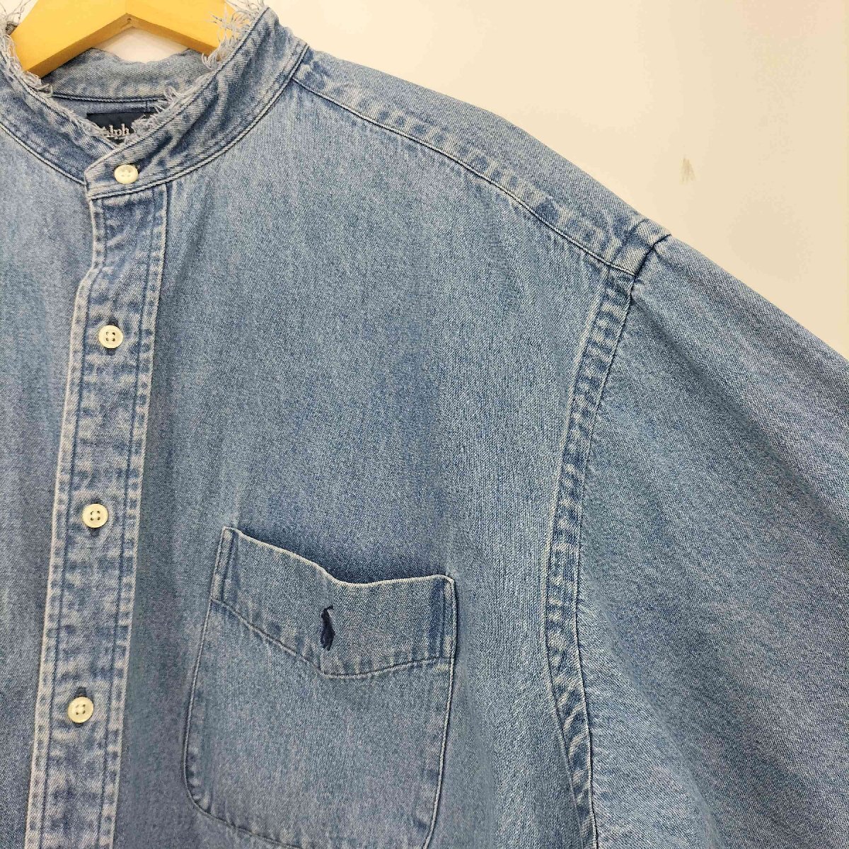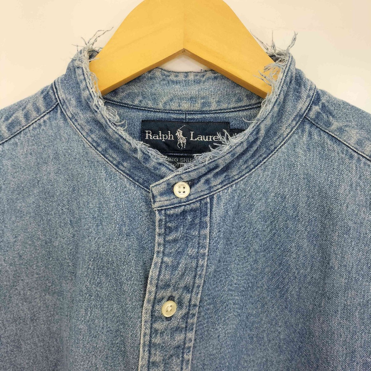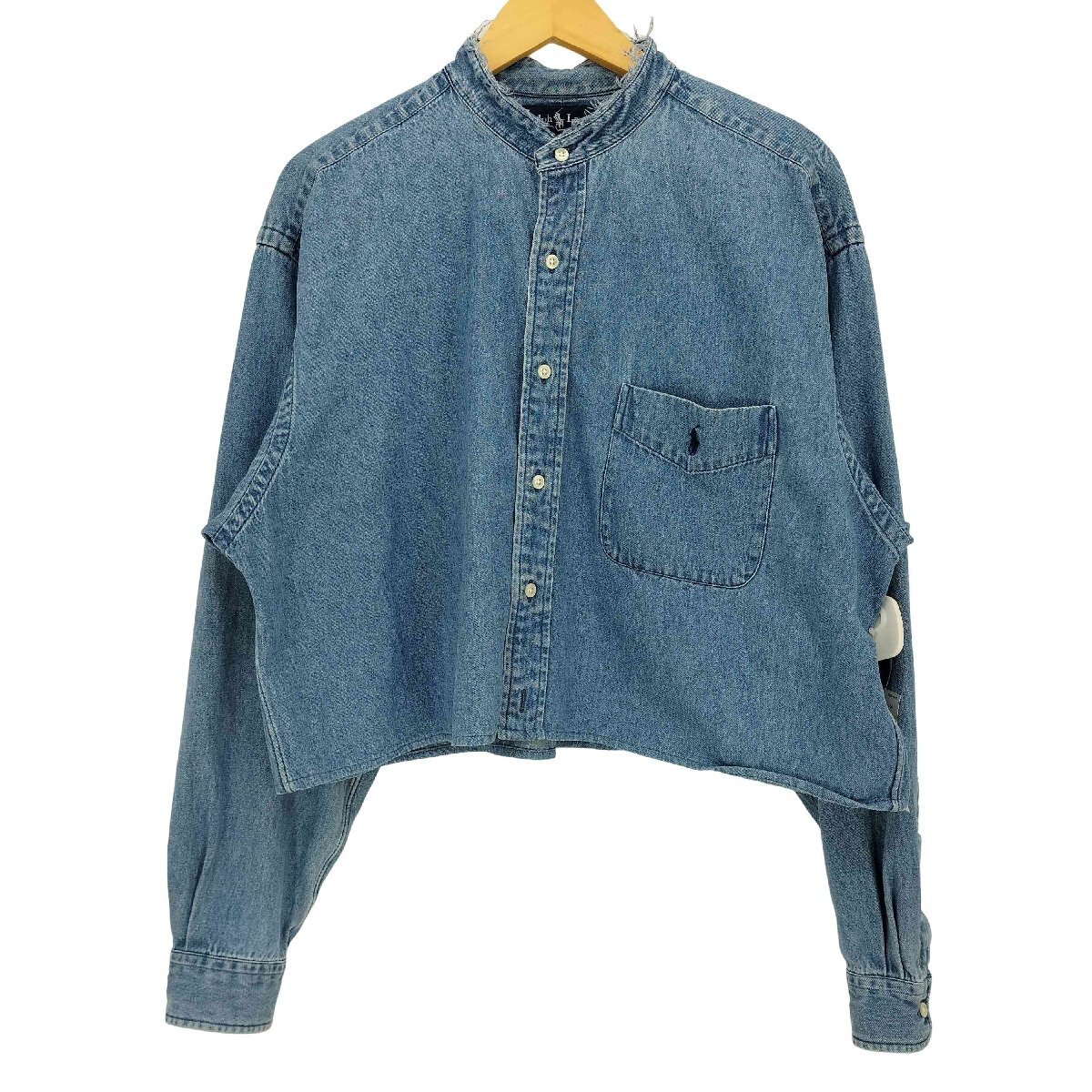 | アイテム | BIG SHIRT ポニー刺繍 クロップド デニム バンドカラー シャツ リメイク |