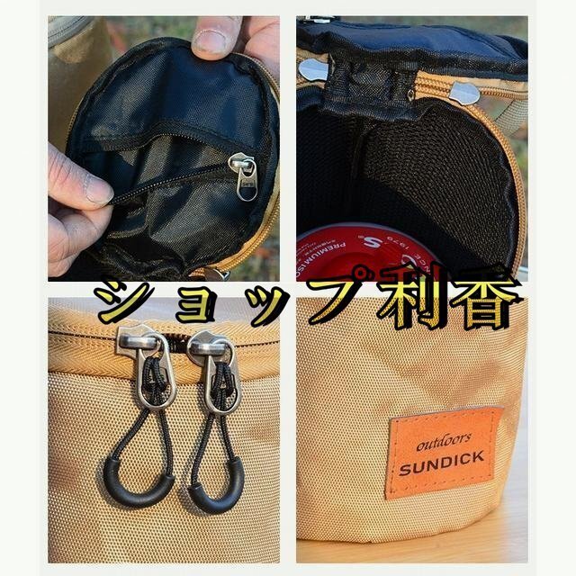 ケースの底部はクッション素材となっており、 衝撃からランタンやガス缶を守る様な作りなので サイズが合えばクッカーケースやランタンケース としても使える大きめの収納バックです。