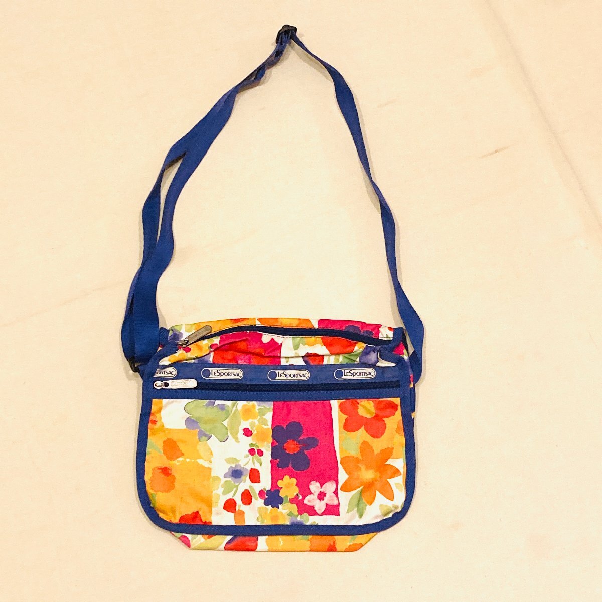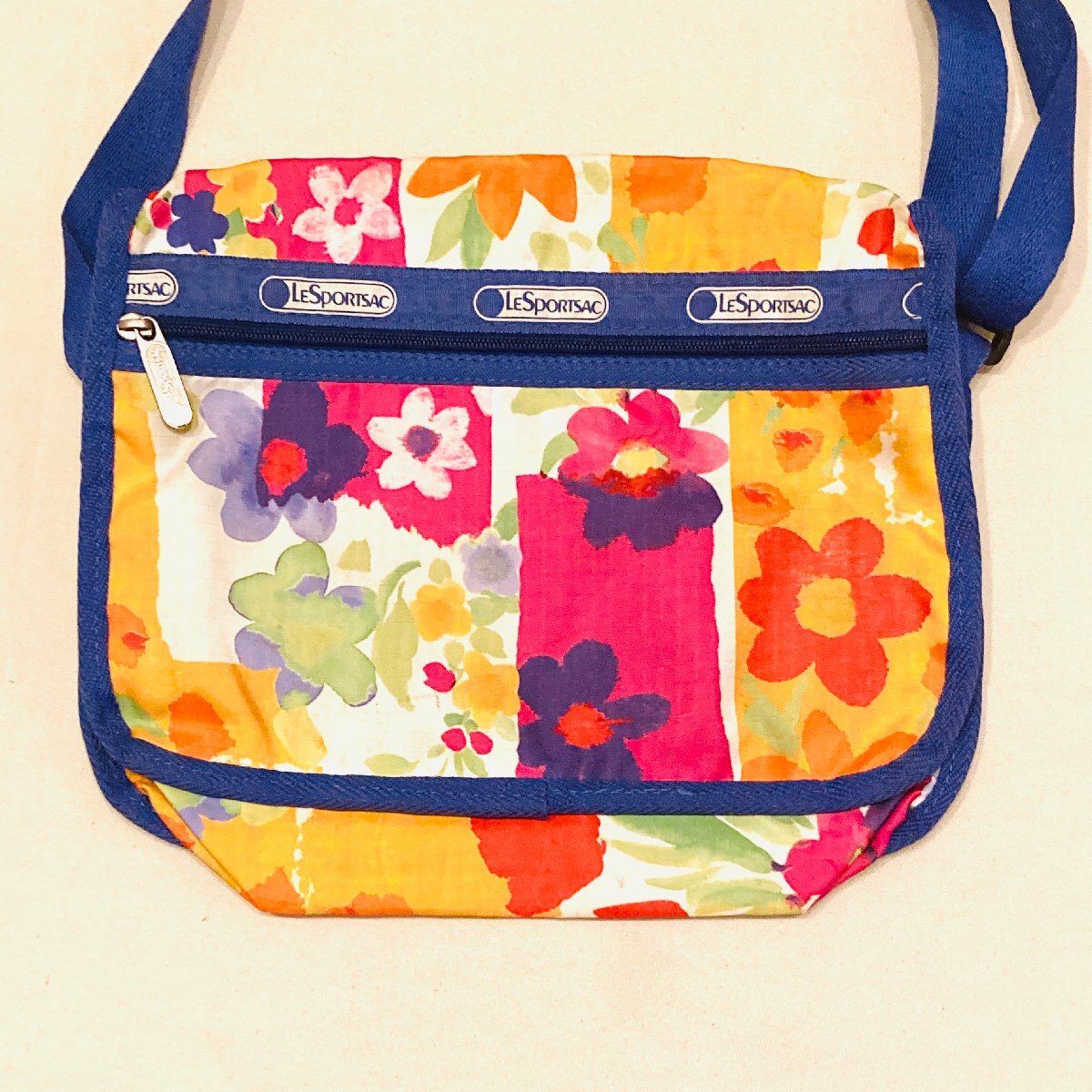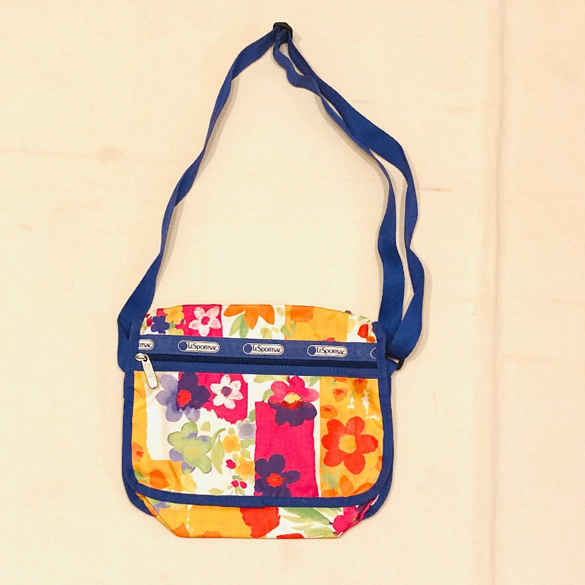 LESPORTSAC レスポートサック MADE IN USA 米国製 ショルダー ボディ バッグ ブルー/ホワイト系 総柄 花柄