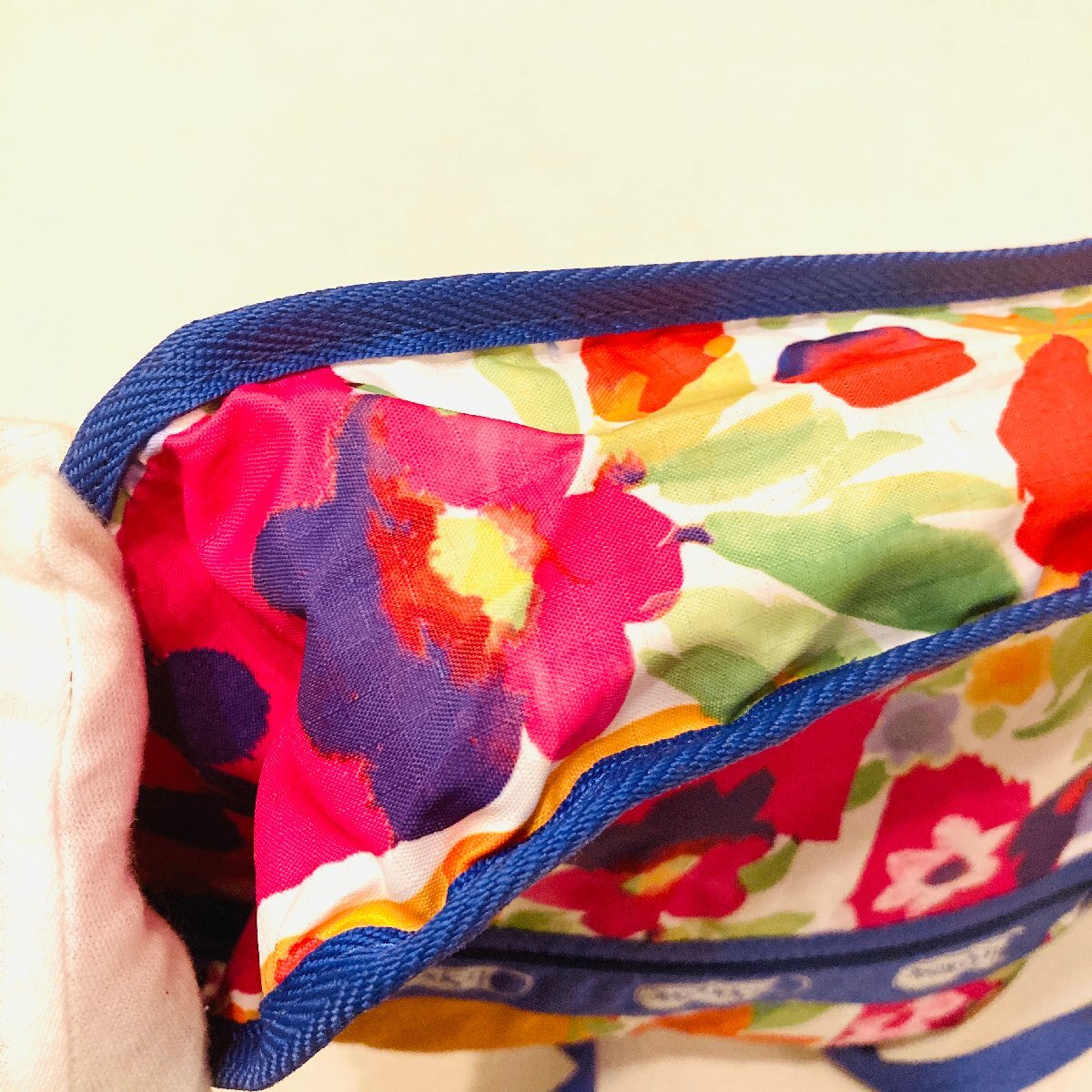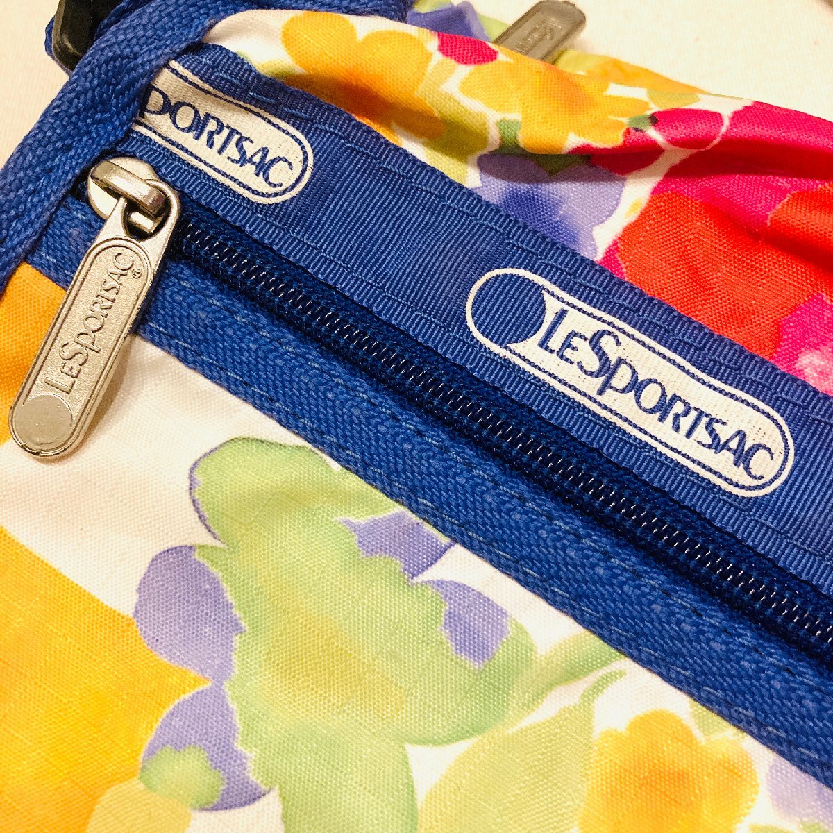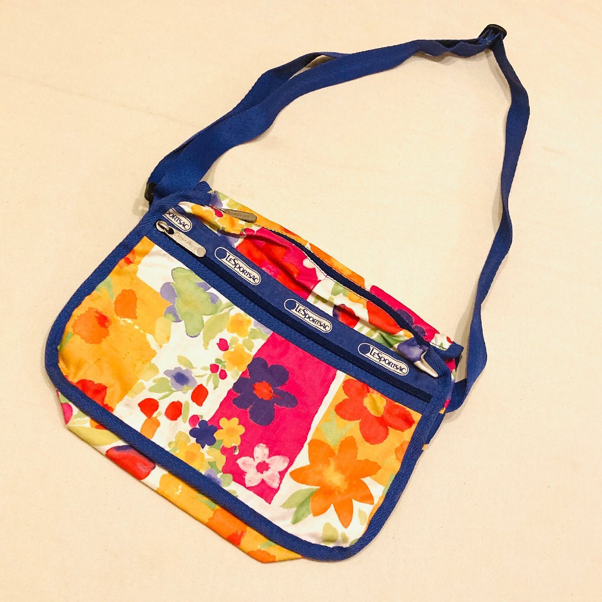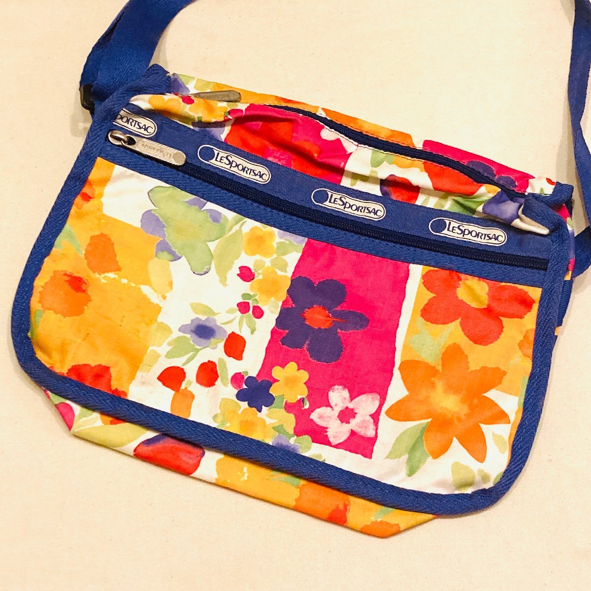 LESPORTSAC レスポートサック MADE IN USA 米国製 ショルダー ボディ バッグ ブルー/ホワイト系 総柄 花柄