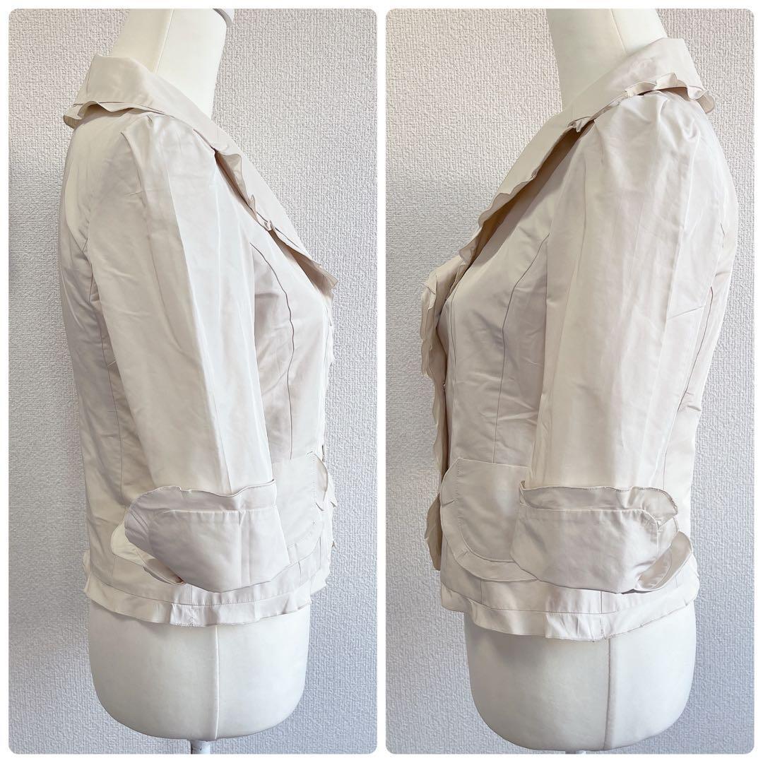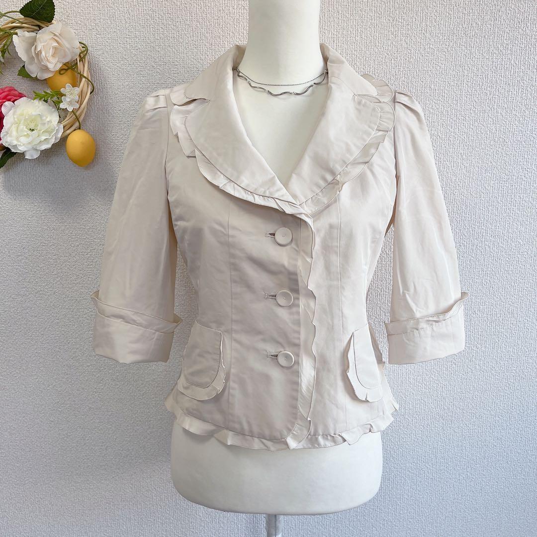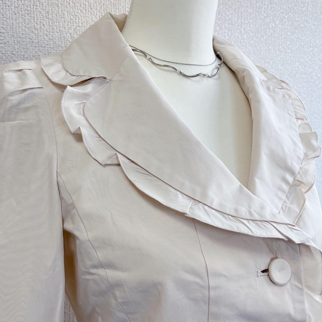 顔周りを華やかに見せるラッフルフリルカラーは、大人の可愛らしさと品の良さを両立してくれる1着です♪