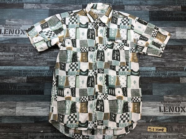 FIELD ADVENTURE メンズ 総柄 胸ポケット 半袖シャツ M カーキ白他 です。
