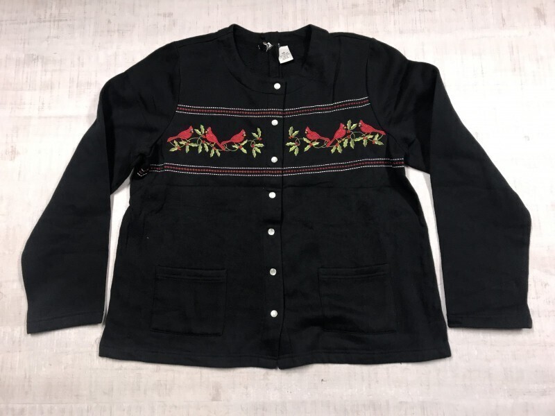 オールド レトロ カントリー アメカジ チロリアン 古着 花鳥 刺繍 ノーカラー スウェット ジャケット レディース スナップボタン M 黒 です。