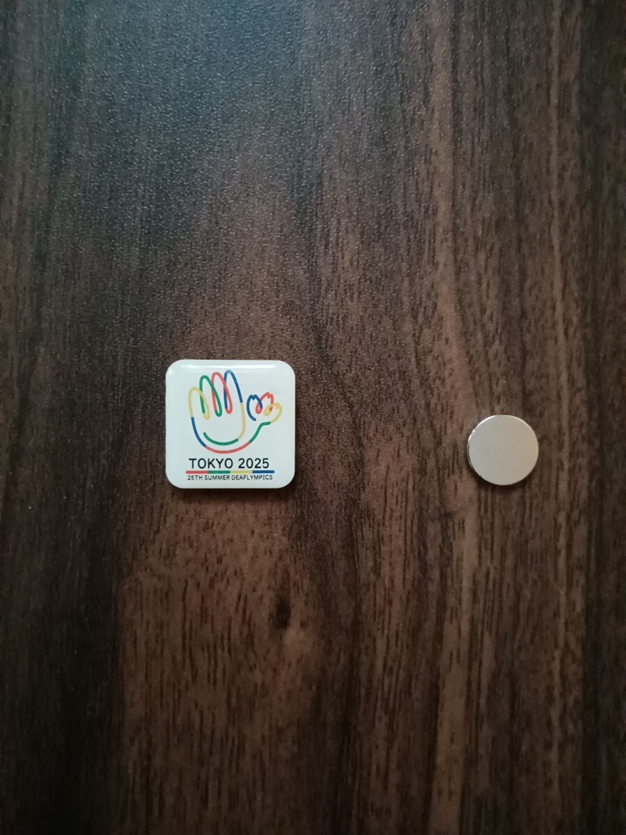 東京2025 デフリンピックのステッカーとマグネットバッチです。