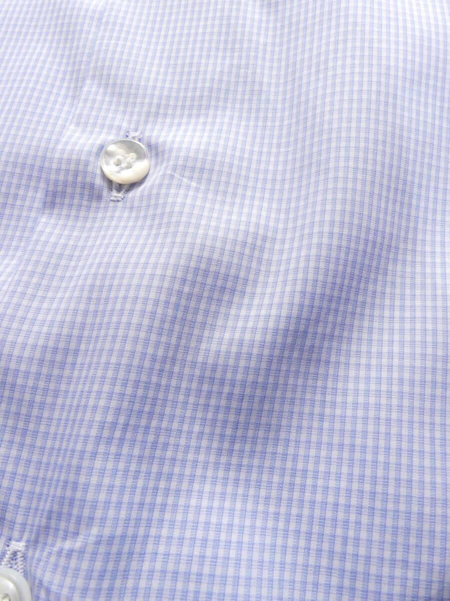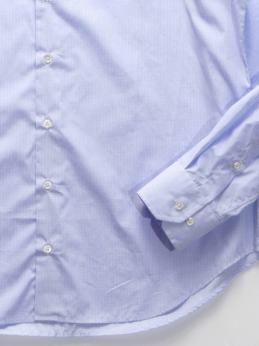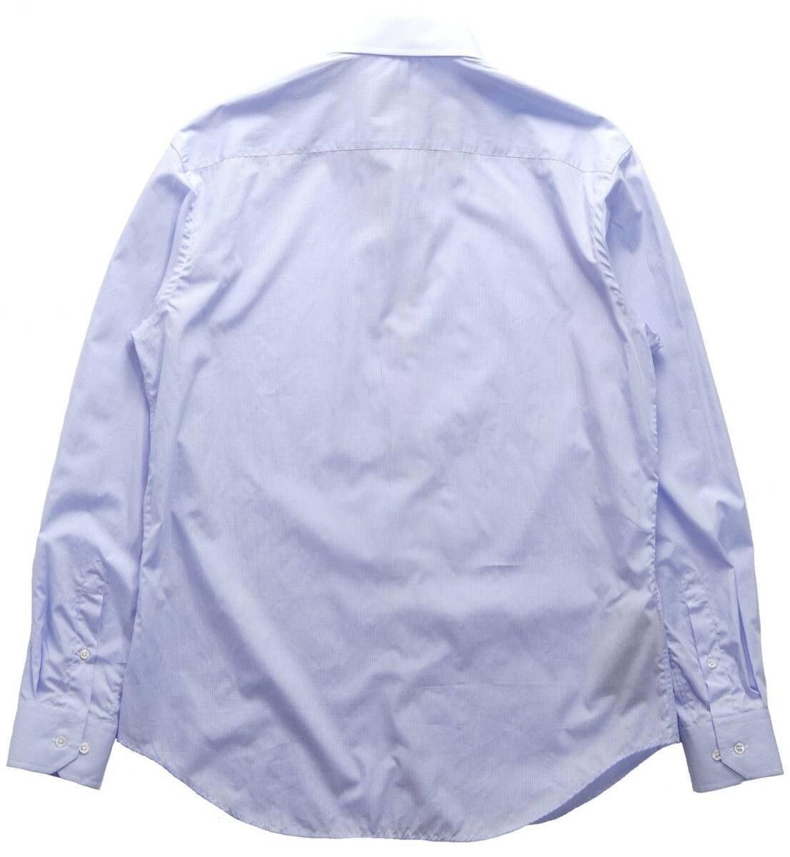 最高の仕立て、最高品質の生地、最高の着心地が約束されたジョルジオのドレスシャツ。何事も同じですが2,980円のシャツがある一方で10万円のシャツが存在します。ちょうど良い頃合いは人それぞれ予算の事情や好みで異なりますが、自分の場合は経験上3万円のシャツは着心地も見た目も満足できるレベルです。2万円だと生地質感が少し物足りない、もしくは仕立て(見た目)が若干物足りない感じです。シャツは基本的に肌に直接触れる衣類ですので、見た目もさることながら肌触りが重要です。自分の場合はキメ細かな薄手の生地が着心地が良く、シャツの理想です。今回出品のジョルジオのシャツは最高にキメの細かい薄手生地が特徴。薄手とは言ってもシャツ的な通常タイプです。まるでシルクのような肌触りと美しい光沢で到底コットン生地とは思えません。このクラスの生地になると3万円では間違いなく入手不可能。恥ずかしながら自分の場合はシャツに10万円払うことが出来ませんので、今回のシャツを自腹でブティックで買って楽しむことはできません。ジョルジオのシャツは定番商品のため、この数年間はほとんど仕入れのチャンスは無くなってきていまして、今回は今年2回目の入荷です。このクラスのシャツを3万ほどで手に入れることができるのは本当に幸せではないかと思います。お勧めの世界の超一流品でございます。