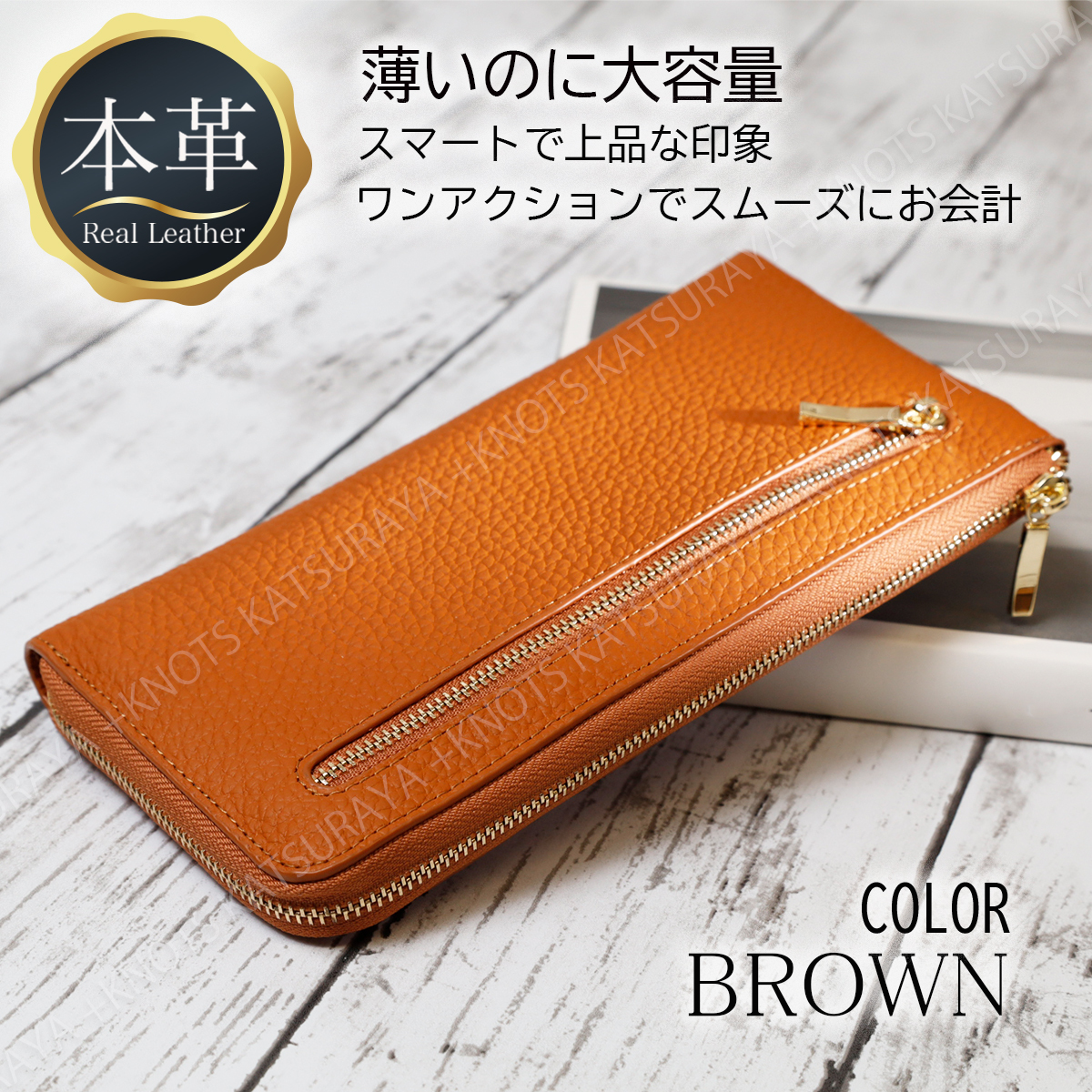 本革 L字ファスナー レディース 長財布★ブラウン★スキミング防止 薄い 薄型 スリム シンプル 軽い 大容量 柔らかい 牛革 レザーa396