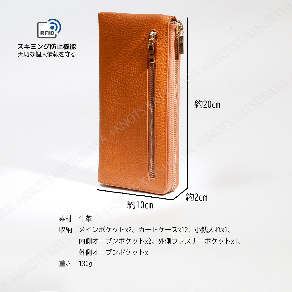 薄くワンアクションで大きく開く、使いやすいL字ファスナーの長財布です。薄くても大容量、バッグの中でかさばりません。柔らかく温かみのある本革を使用したシンプルなデザインは上品な印象です。大切な情報を守るスキミング防止機能付き。