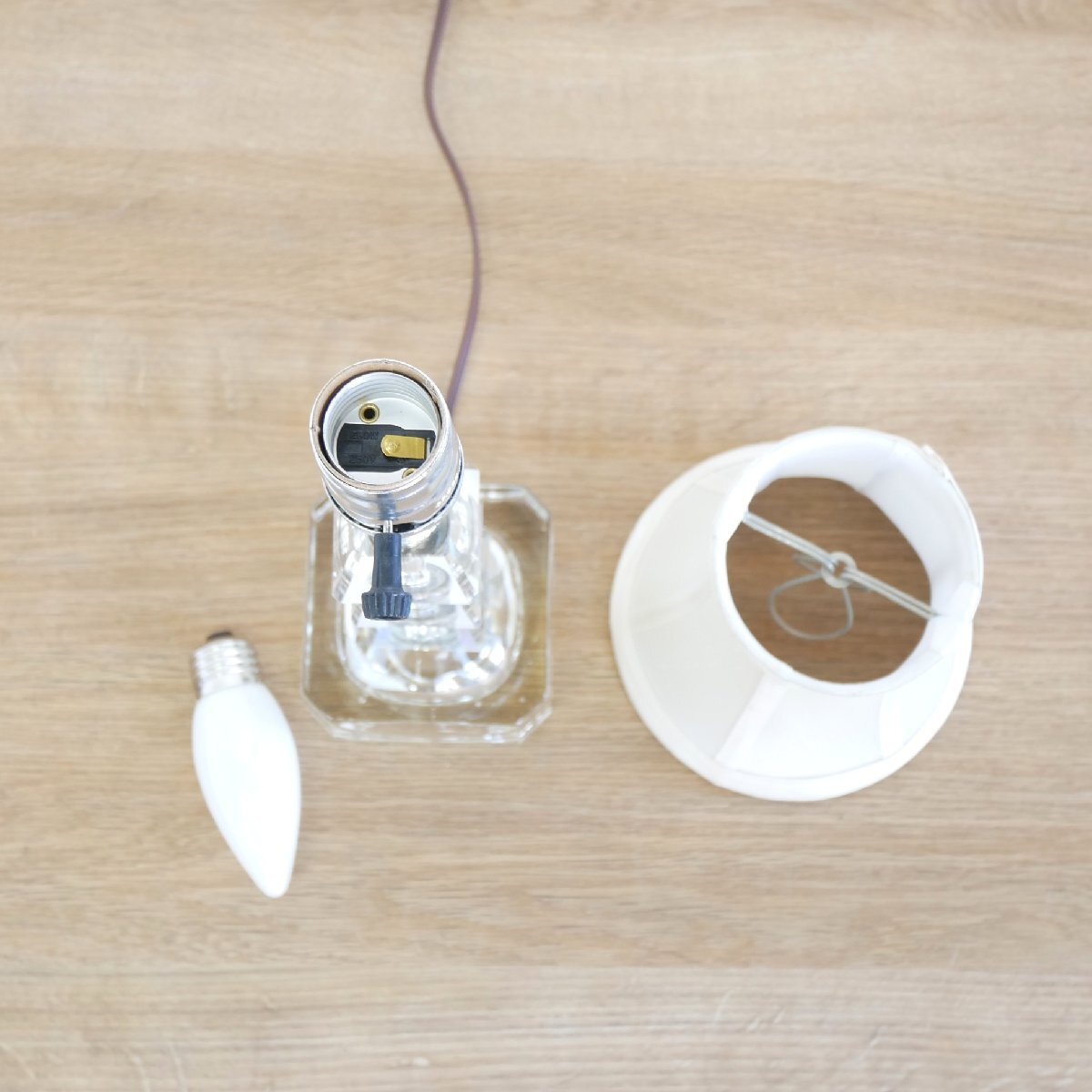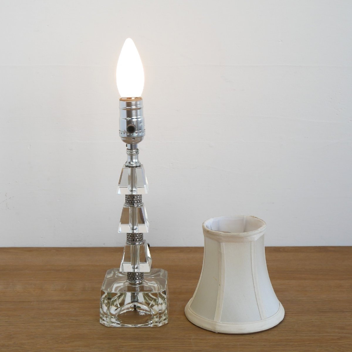 | 商品説明 explanation | 1970年代のクリアガラス テーブルランプです。 ガラスの装飾と、ファブリックシェードからこぼれる灯りに癒されます。 GIBRALTAR.MFG.CO.INC (ジブラルタル マニュファクチャリング カンパニー) 製 材質:ガラス、メタル、プラスチック、布 電球は日本で市販されているシャンデリア球(E26,40W)を使用しています。 ヴィンテージ照明をお部屋のインテリアにいかがでしょうか。 |