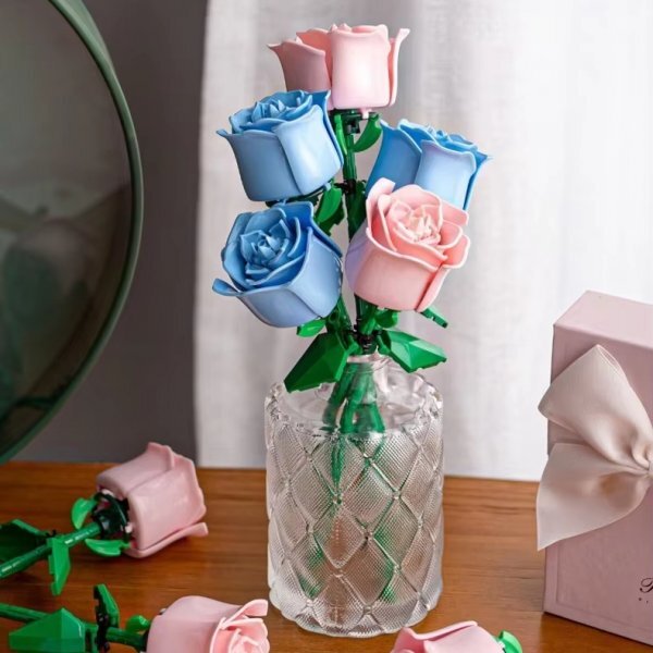インテリアやプレゼントなどにも使える薔薇バラのデザインのブロック玩具です。