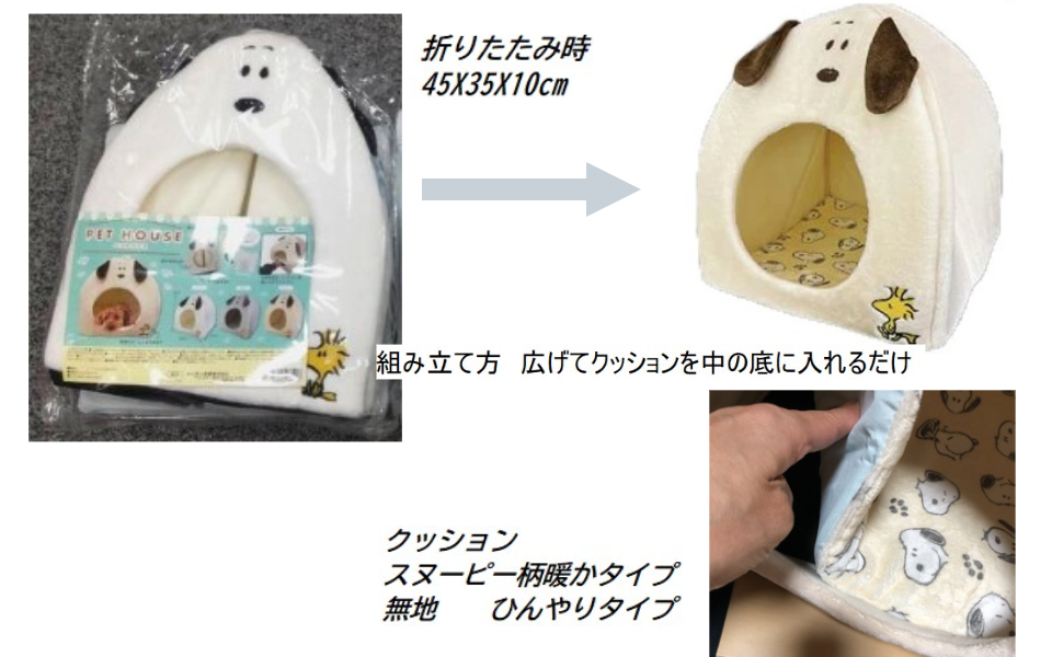 新品 スヌーピー ドーム型ペットハウス 犬 猫 おしゃれ 室内 組み立て簡単 小型犬 通年 折りたたみ 軽い カラー アイボリー 犬