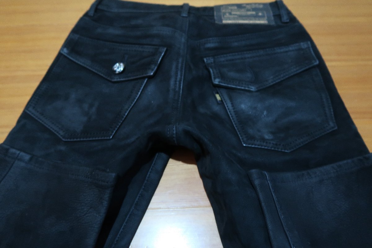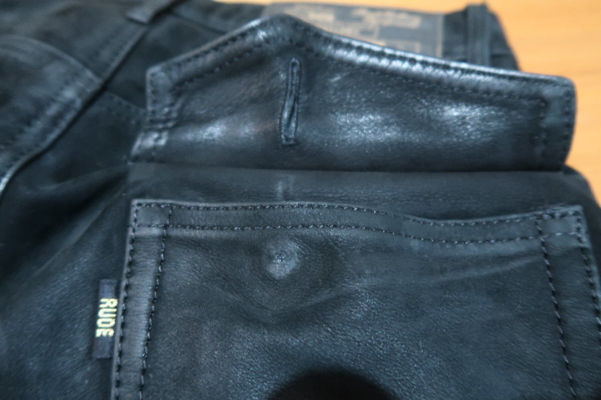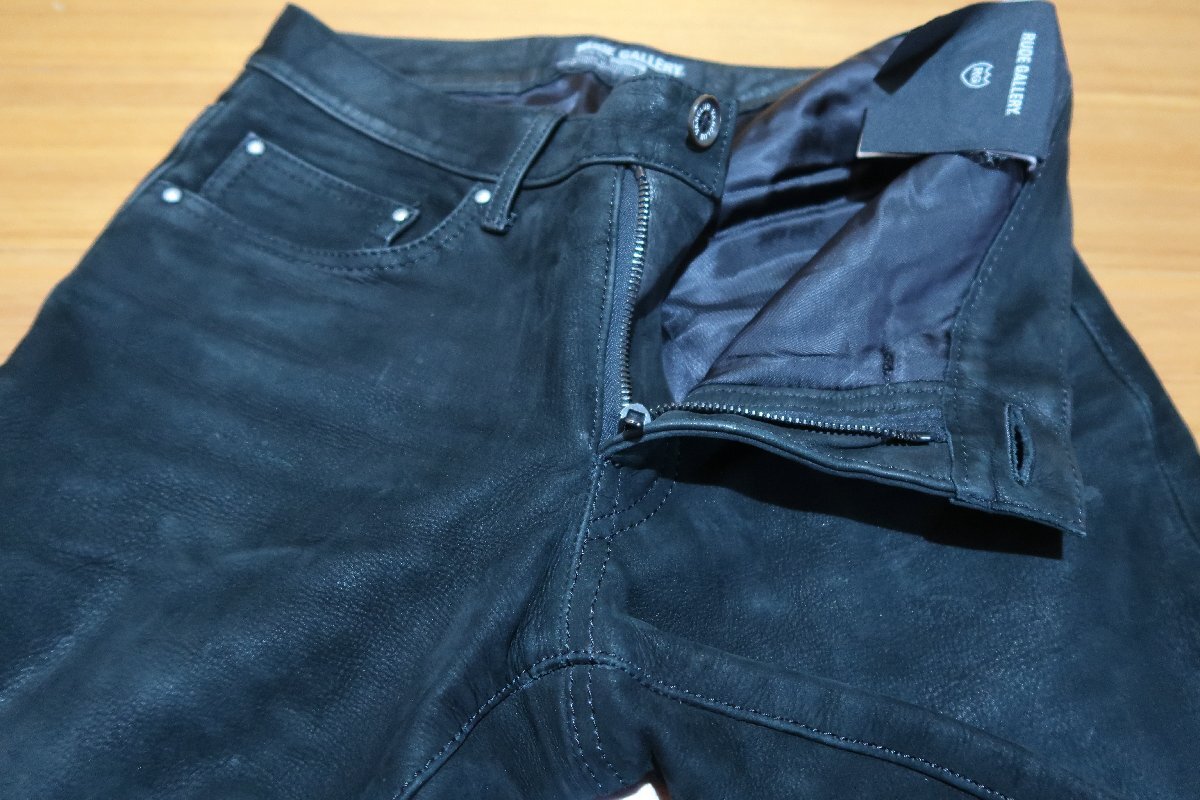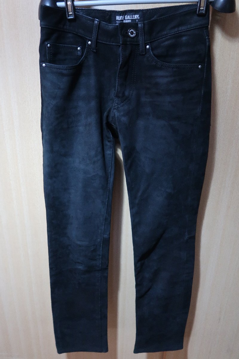 ルードギャラリー ヌバック レザーパンツ 28インチです、ウエスト約36×2cm 股上約20cm 股下約75cm 裾幅約16.5cmです、使用感がありフロントボタンが違うものが付いています、右バックポケットのボタンがありません、発送は宅急便の送料元払いのみになります。