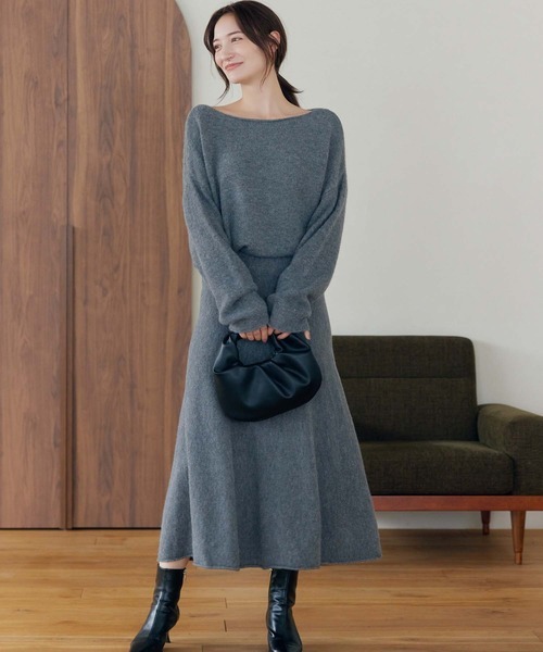 ボートネックニット上下スカートセットアップfifthフィフス2ピースワンピースグレー灰色Mフレアースカート未使用新品