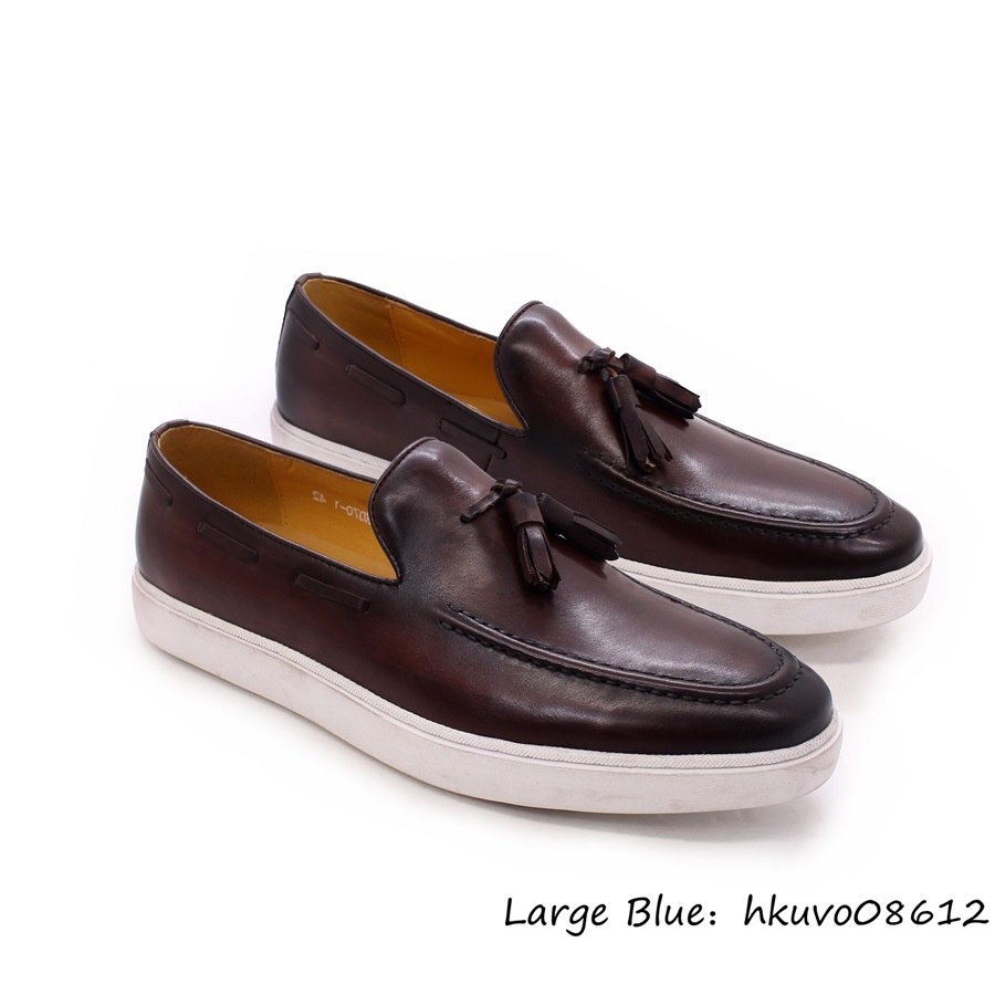 超美品&定価9万 ビジネスシューズ メンズ 本革 ローファー スリッポン 職人手作り タッセル 高級牛革 レザーシューズ 革靴 珈琲色 24.5cm