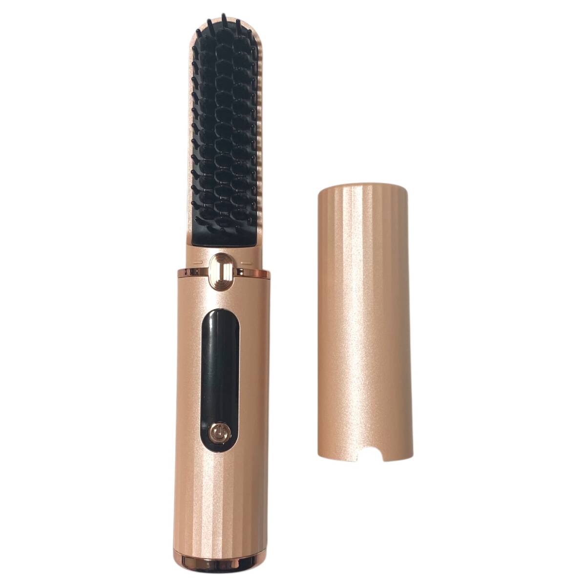【1円オークション】コードレスヘアストレートブラシ ポータブルホットコーム ヘアアイロン USB充電式 自動オフ ピンク ARM1792