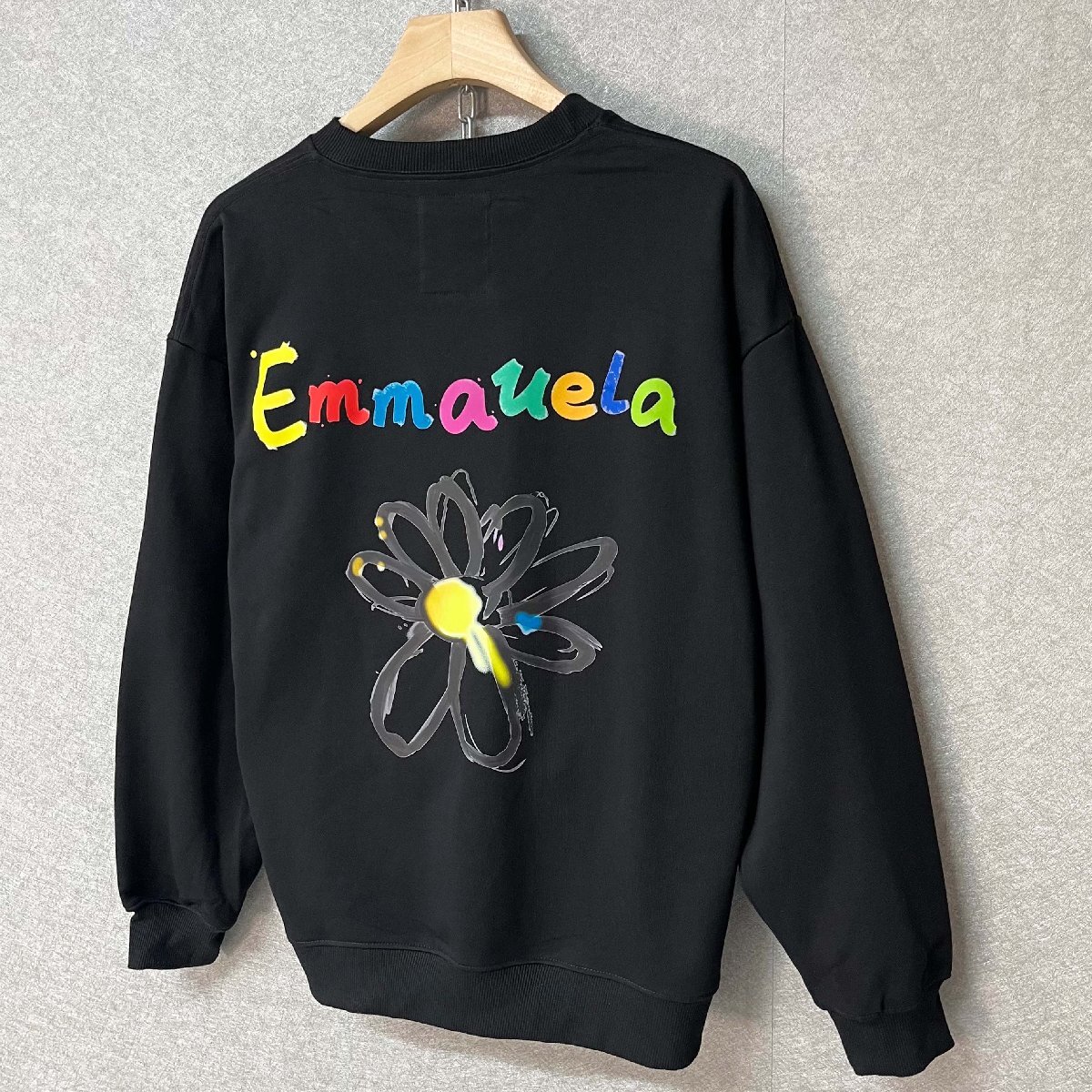 高級・トレーナー 定価4万◆Emmauela・イタリア・ミラノ発◆エジプト綿100% 柔らか 花柄 ゆったり カットソー 長袖tシャツ 普段着 L/48