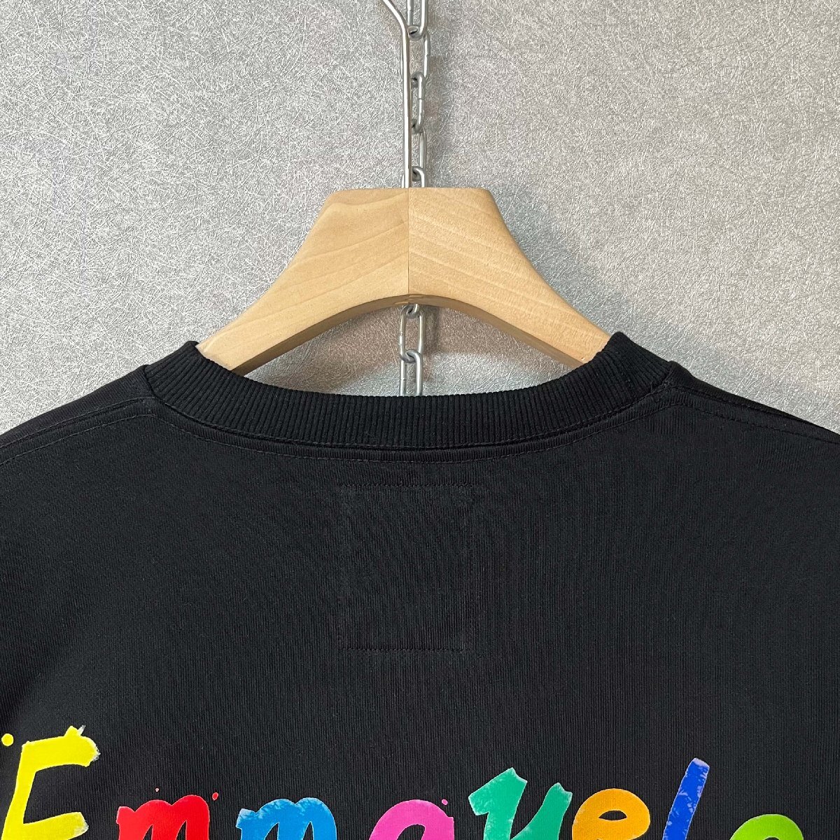 デザインは、前面をあえてシンプルに。背面には英字と花柄を組み合わせた洗練されたプリントが施されており、後ろ姿にさりげない個性を添えます。ゆったりとしたシルエットで、体のラインを拾いにくく、リラックス感も抜群。カジュアルなのにどこか上品で、着る人を選ばない万能な一枚です。