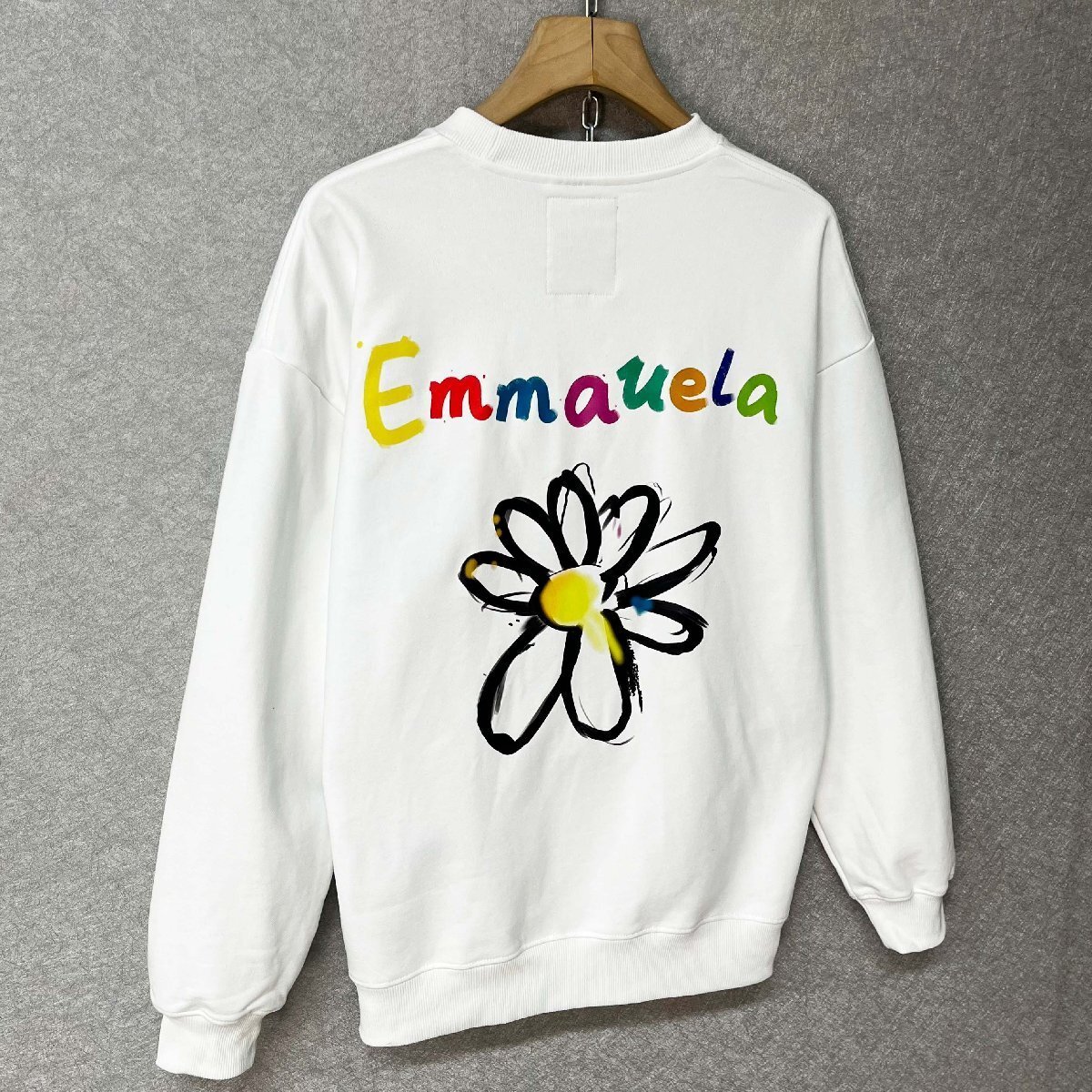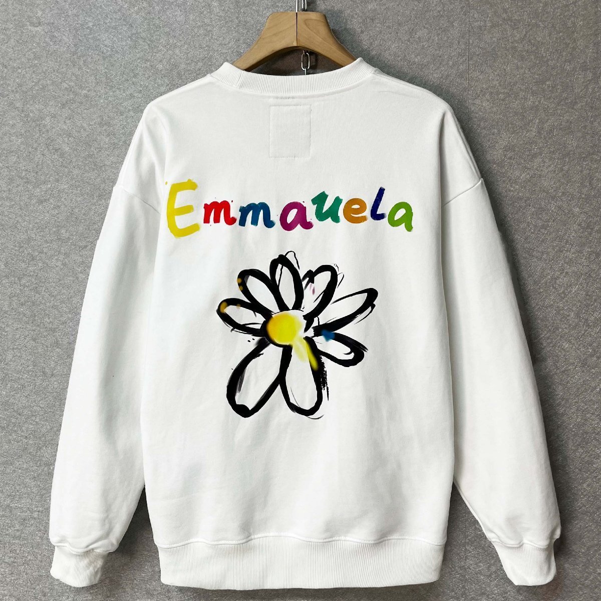 絶賛・トレーナー 定価4万◆Emmauela・イタリア・ミラノ発◆エジプト綿100% 柔らか 通気 花柄 ゆったり カットソー 長袖tシャツ 普段着 L/48サイズ