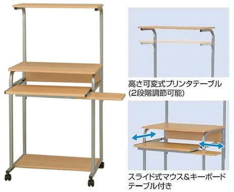キーボードテーブルとマウステーブルはスライドレール付き。