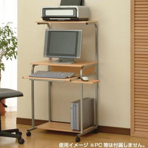 パソコンデスク 机 木製 ハイタイプ PCラック 幅60cm 奥行48cm パソコンラック 上棚 プリンタ台 スライドテーブル付 ナチュラル 90937