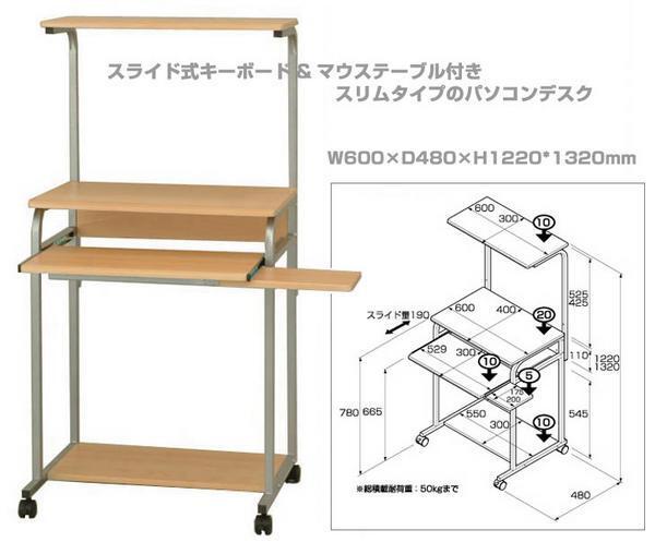 シンプルなパソコンラック  幅60センチのスリムなラック。