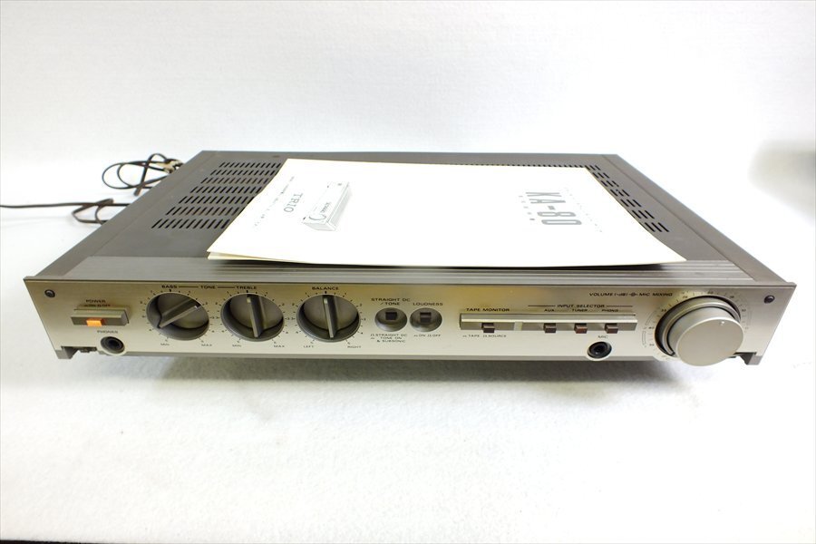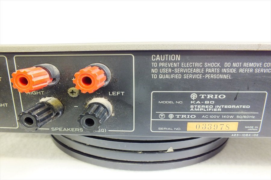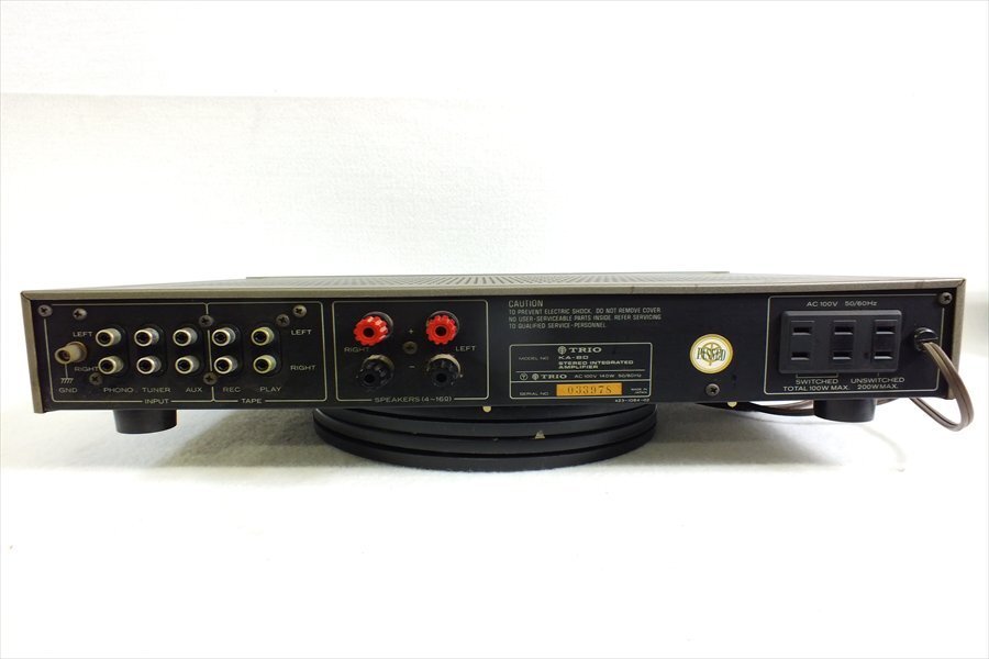 | ◆商品◆ メーカー---------TRIO トリオ 型式-------------KA-80 付属品-----------画像に写っているものがすべてになります。 ◆外装ランク◆ 【 C 】 ◆状態◆ 中古品の為キズや汚れなどの使用感はご容赦ください。 1 外装に傷汚れ有り 電源スイッチを入れた時に焦げ臭い臭いがしました 通電確認済み 音出しは焦げ臭い臭いがして危ない為、通電確認のみしました 通電はしましたが、動作しませんでした。 現状品での出品となります。 調整やメンテナンスが必要となります。 【重要】配送送料と送料に送料が0円と表示される場合がございますが、出品画面に記載の送料が落札後にご精算されます。 | |||||||||||||||||