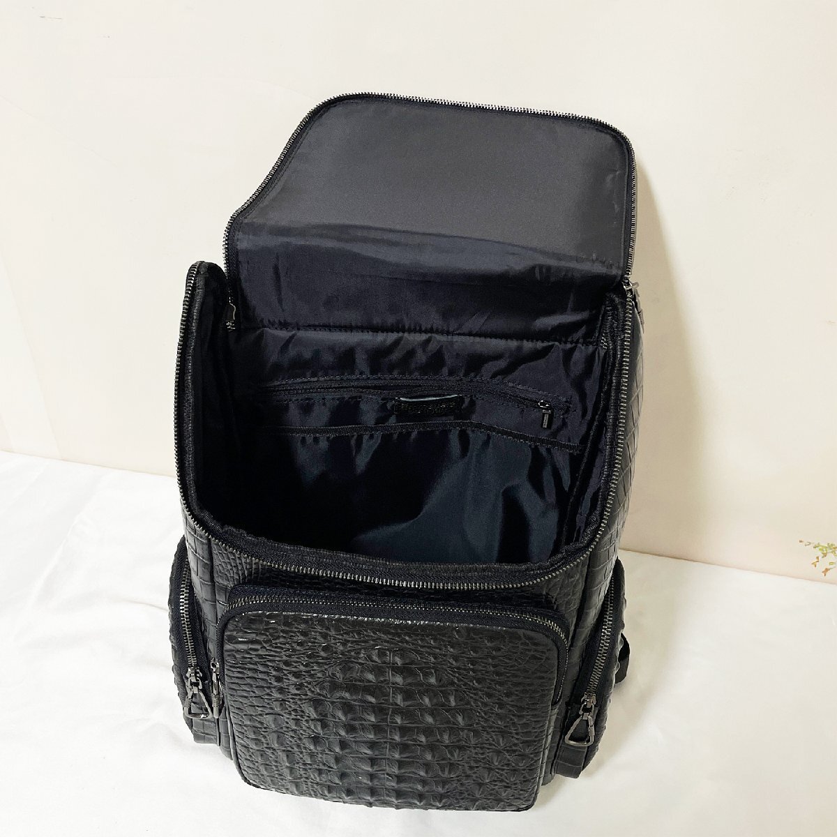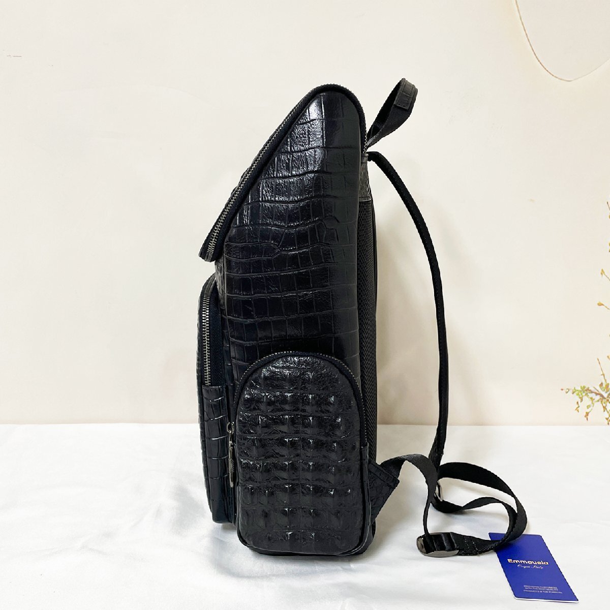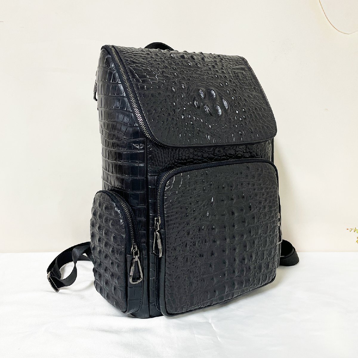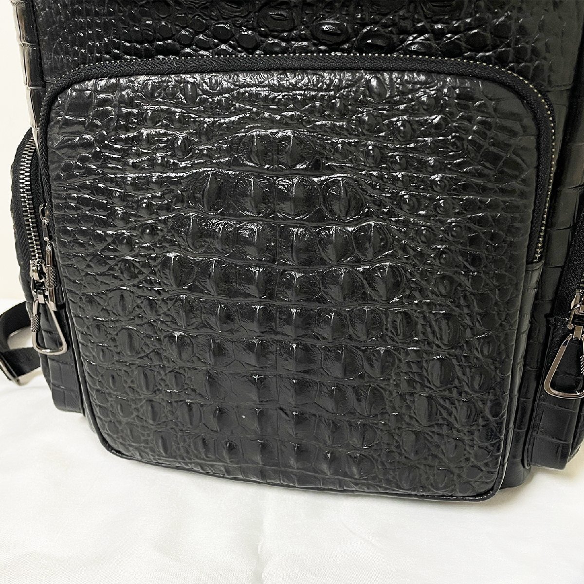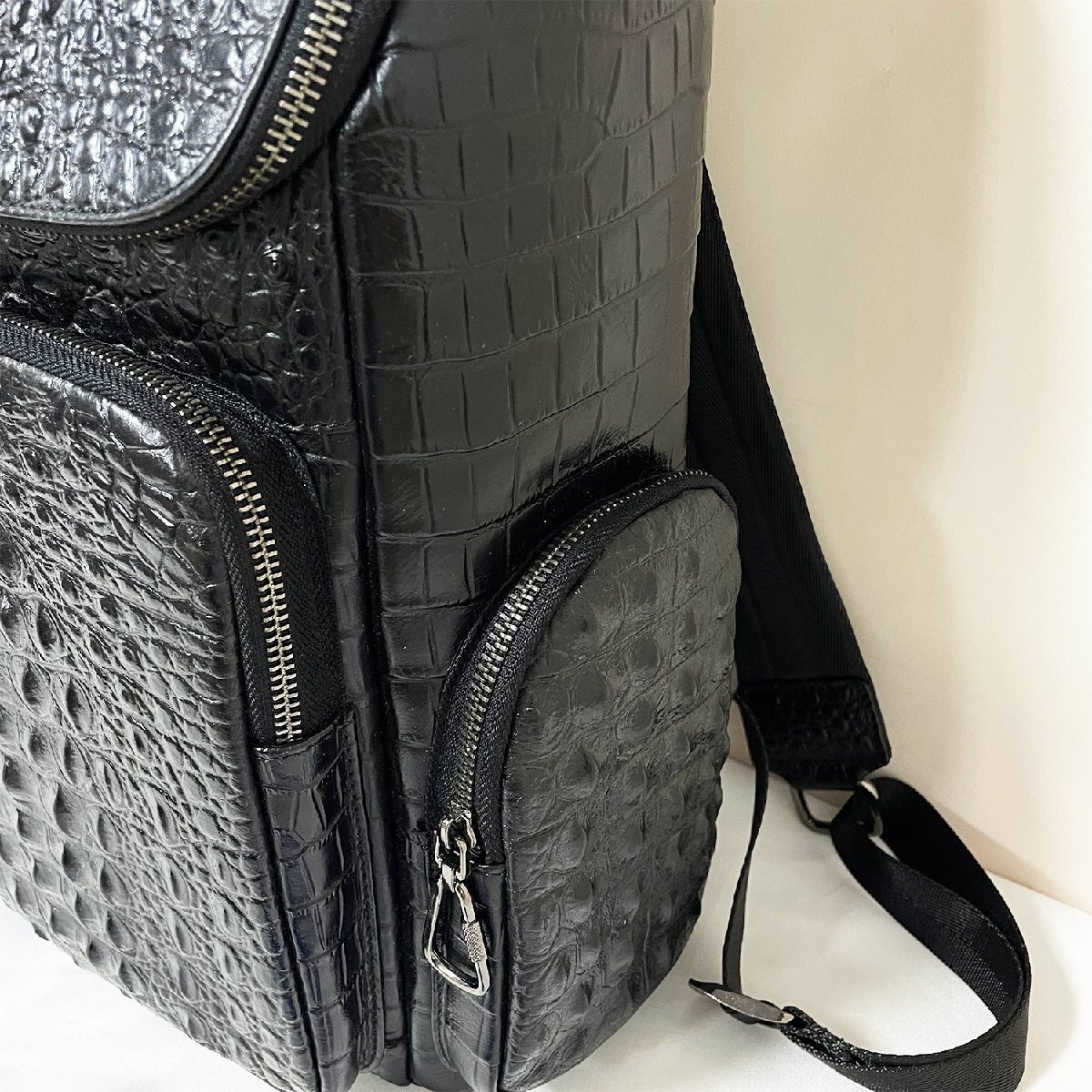クロコダイル柄の独特の模様を持っているため、個性を際立たせることができ、他の人と被りにくいデザインとして注目されます。独立したノートPC用コンパートメントを備えるほか、複数のポケットを備えているため、持ち物を簡便に整理して保管することができます。両側にもポケットも装備しており、すぐお手元に届きたいペットボトルや傘など便利に収納できる。